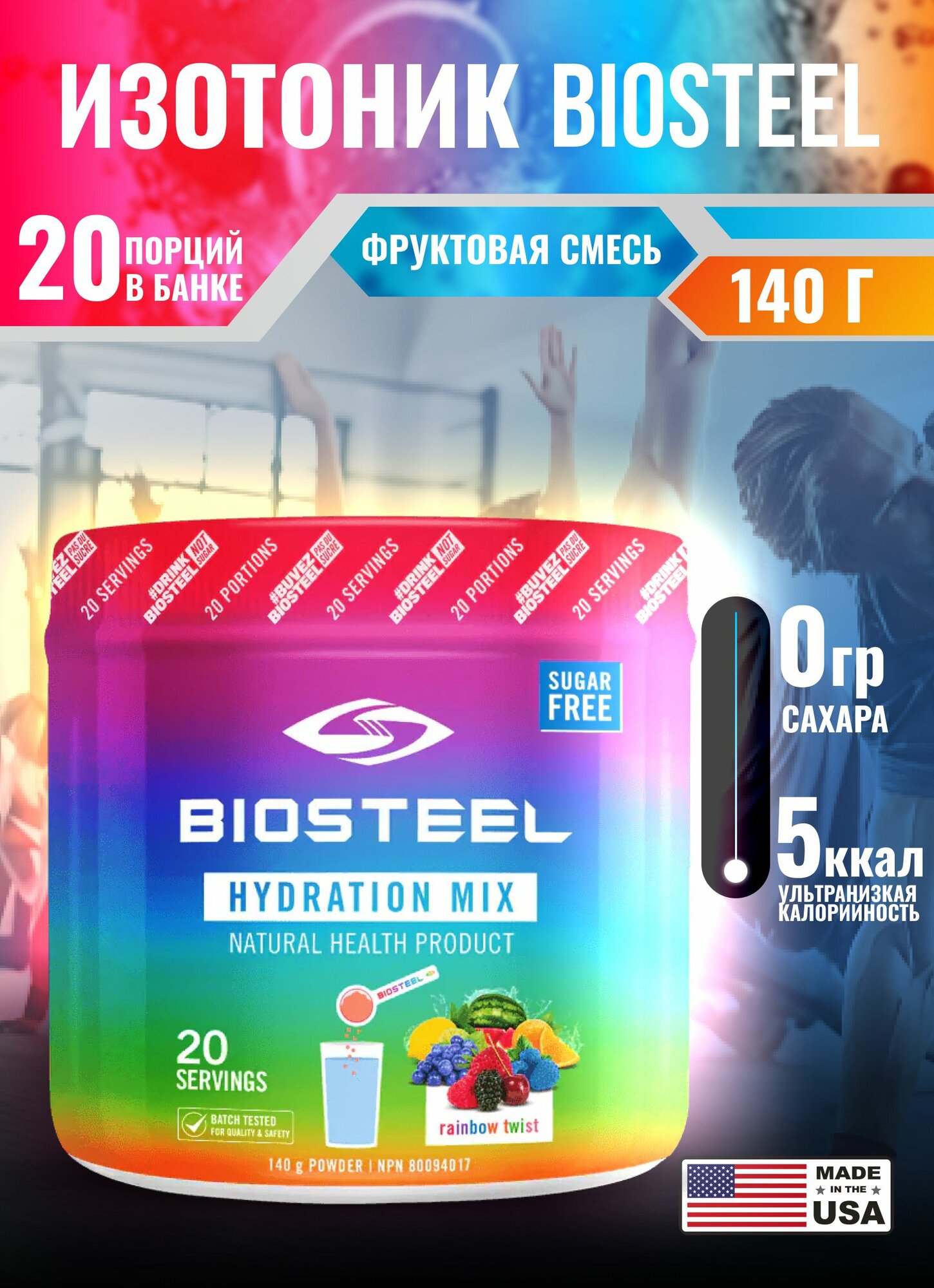 Изотоник без сахара Biosteel Hydration Mix мультифрукт, с витаминами магний и цинк, 20 порций 140 г, спортивное питание Биостил