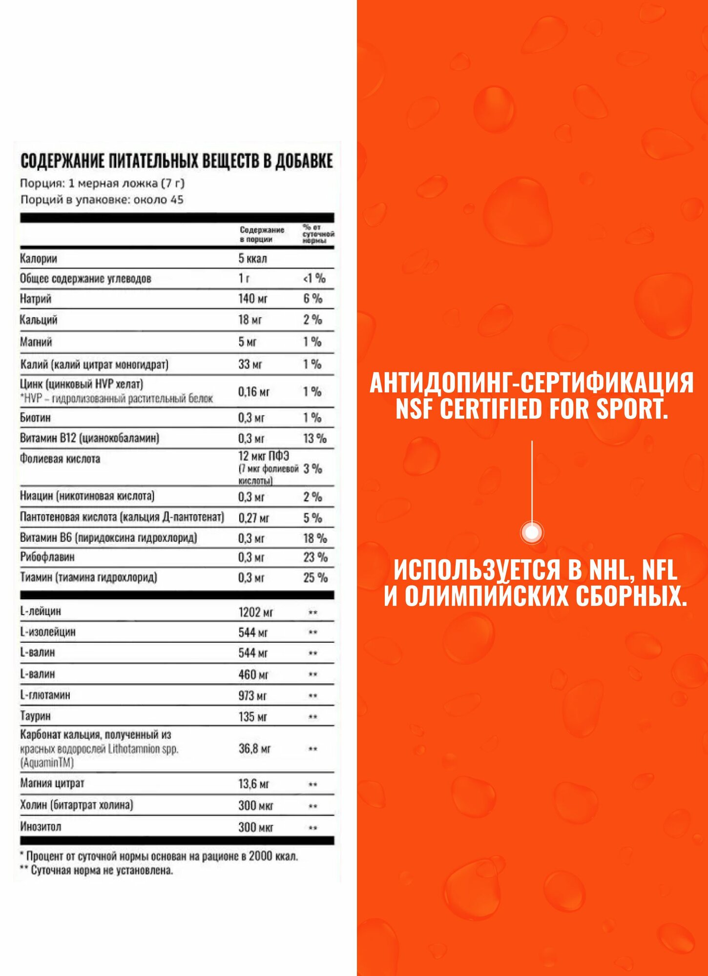 Развести 1 мерную ложку в 500 мл воды. Принимать до, во время и после тренировки.