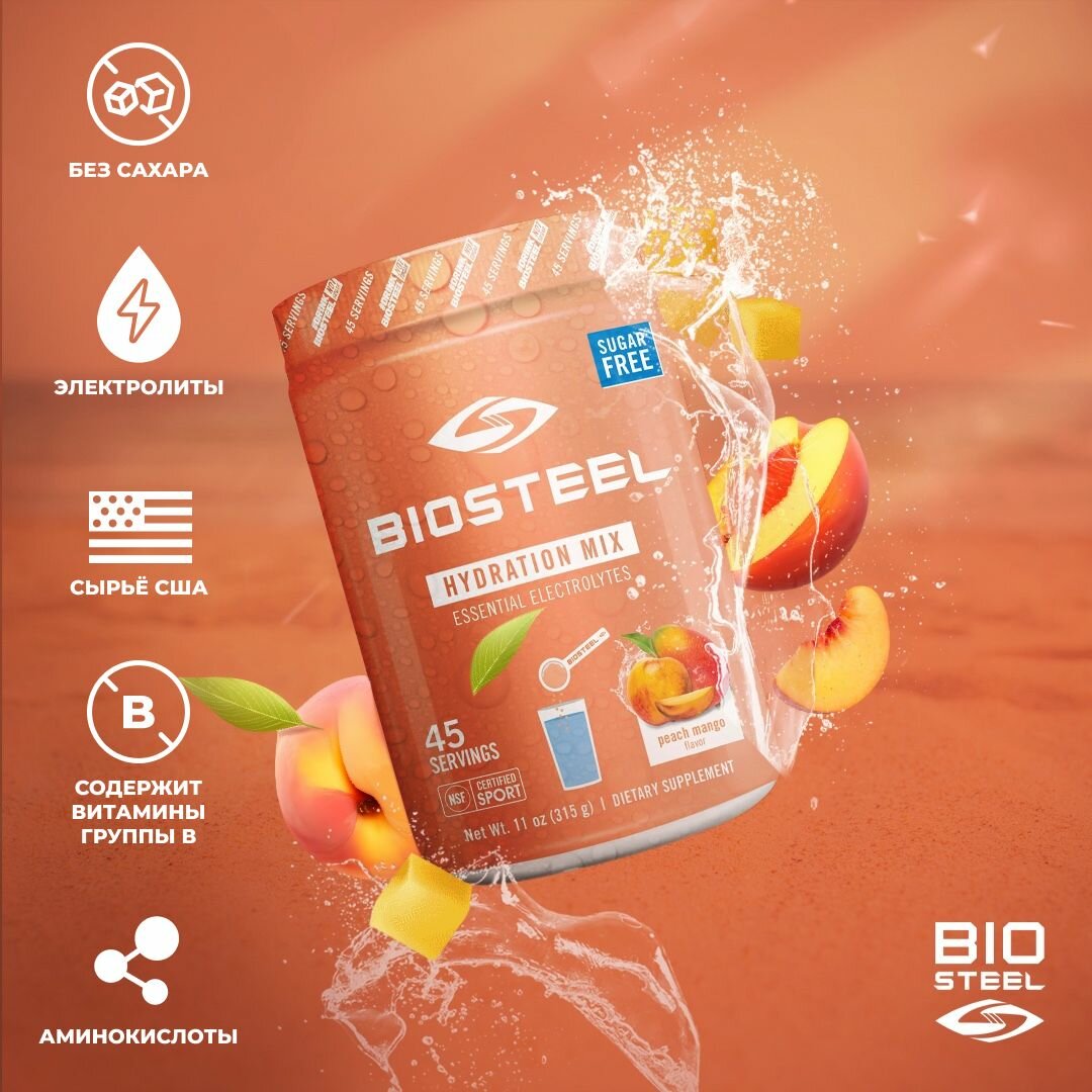 BioSteel Sports Hydration Mix — это уникальное функциональное спортивное питание/или спортпит/ и решение для спортсменов, не употребляющих допинг и ищущих питательные добавки высочайшего качества. Каждая партия продукции BioSteel получает сертификат NSF Certified For Sport, а также независимо проверяется лабораторией, одобренной вада, что гарантирует отсутствие каких-либо запрещенных веществ даже в незначительных количествах.