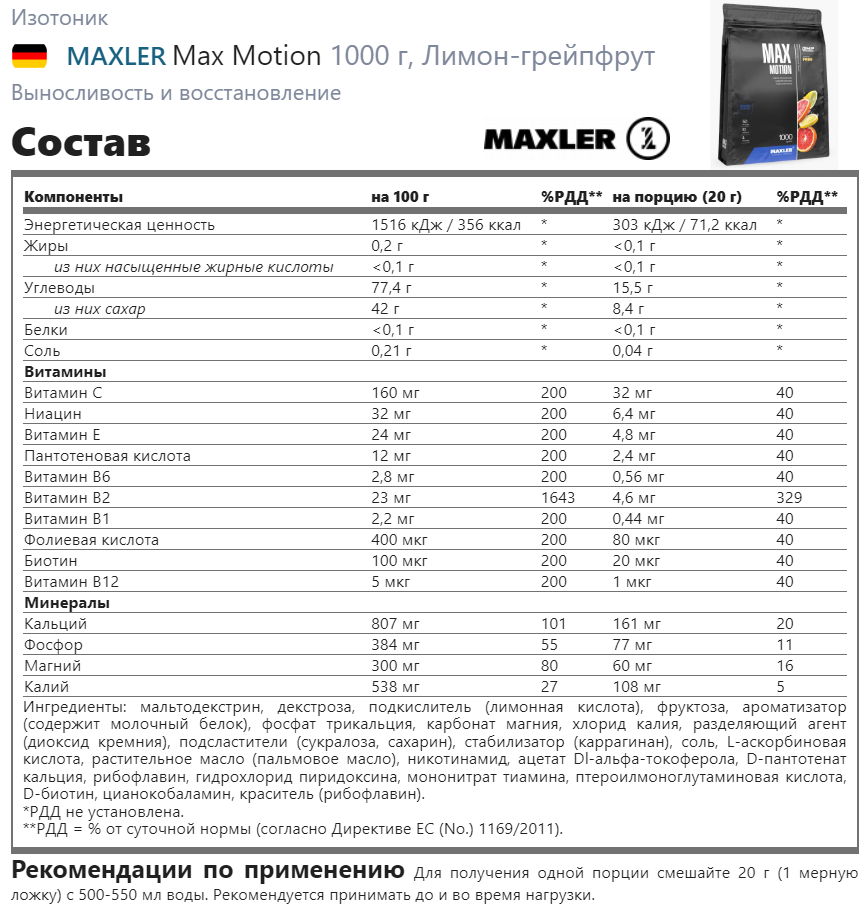 Maxler Max Motion, 1000 г (Лимон-грейпфрут): сравнение цен, характеристики, фото, актуальное наличие и цены.