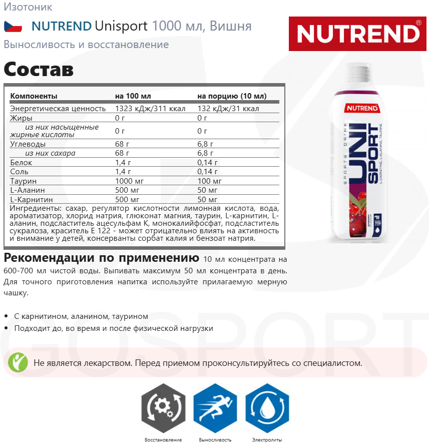 NUTREND Unisport 1000 мл, Вишня: сравнение цен, характеристики, фото, актуальное наличие и цены.