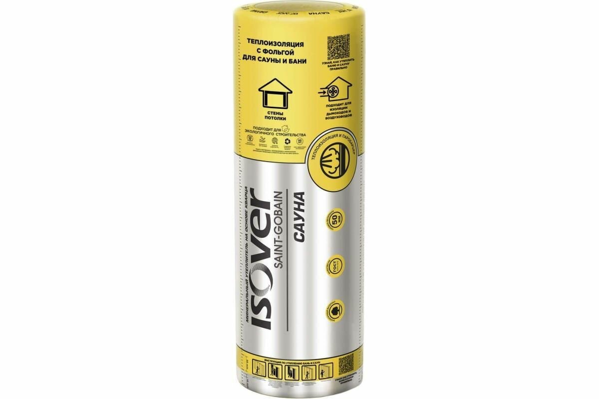 Утеплитель и пароизоляция Isover Сауна, 12500х1200х50 мм, 15 м2 / Утеплитель для бани Изовер Сауна: сравнение цен, характеристики, фото, актуальное наличие и цены.