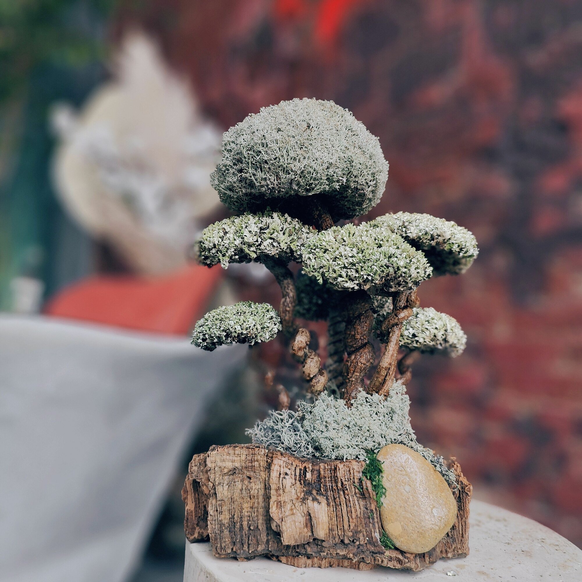 Бонсай цетрария не требует особого ухода, что делает его идеальным вариантом для занятых людей или тех, кто не имеет возможности ухаживать за живыми растениями. Это дерево легко впишется в различные стили интерьера, от минимализма до кантри, придавая им уникальный шарм. Благодаря использованию мха, бонсай отличается долговечностью и стойкостью к внешним условиям, что позволяет использовать его как в помещении, так и на открытом воздухе.
