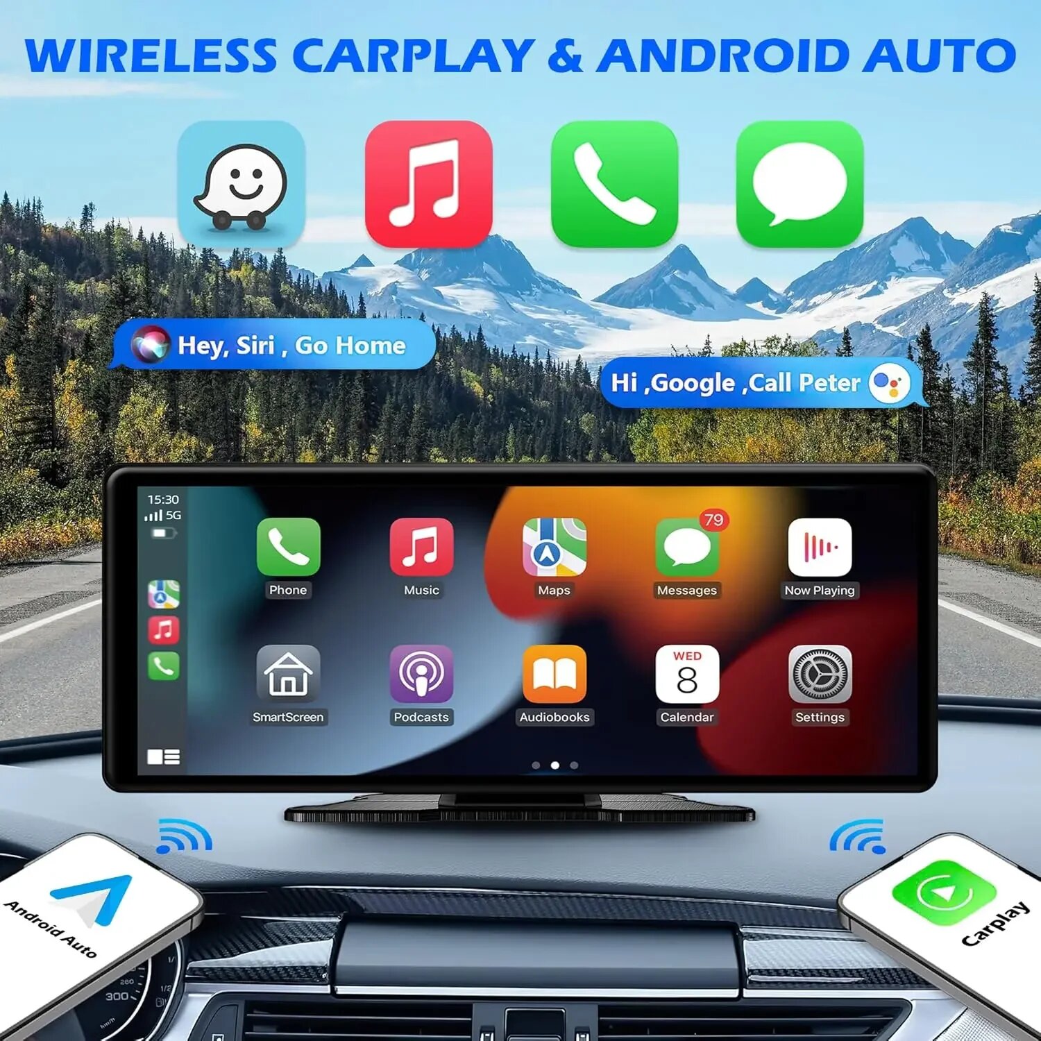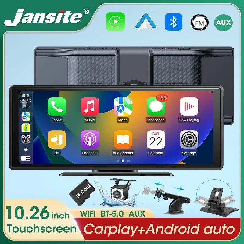 Купить Jansite 10,26-дюймовый портативный беспроводной Carplay экран HD задняя камера заднего вида автомобильный радиоприемник видеорегистратор мультимедийный видеоплеер Android Auto, PAD Long bracket с доставкой по всей России.