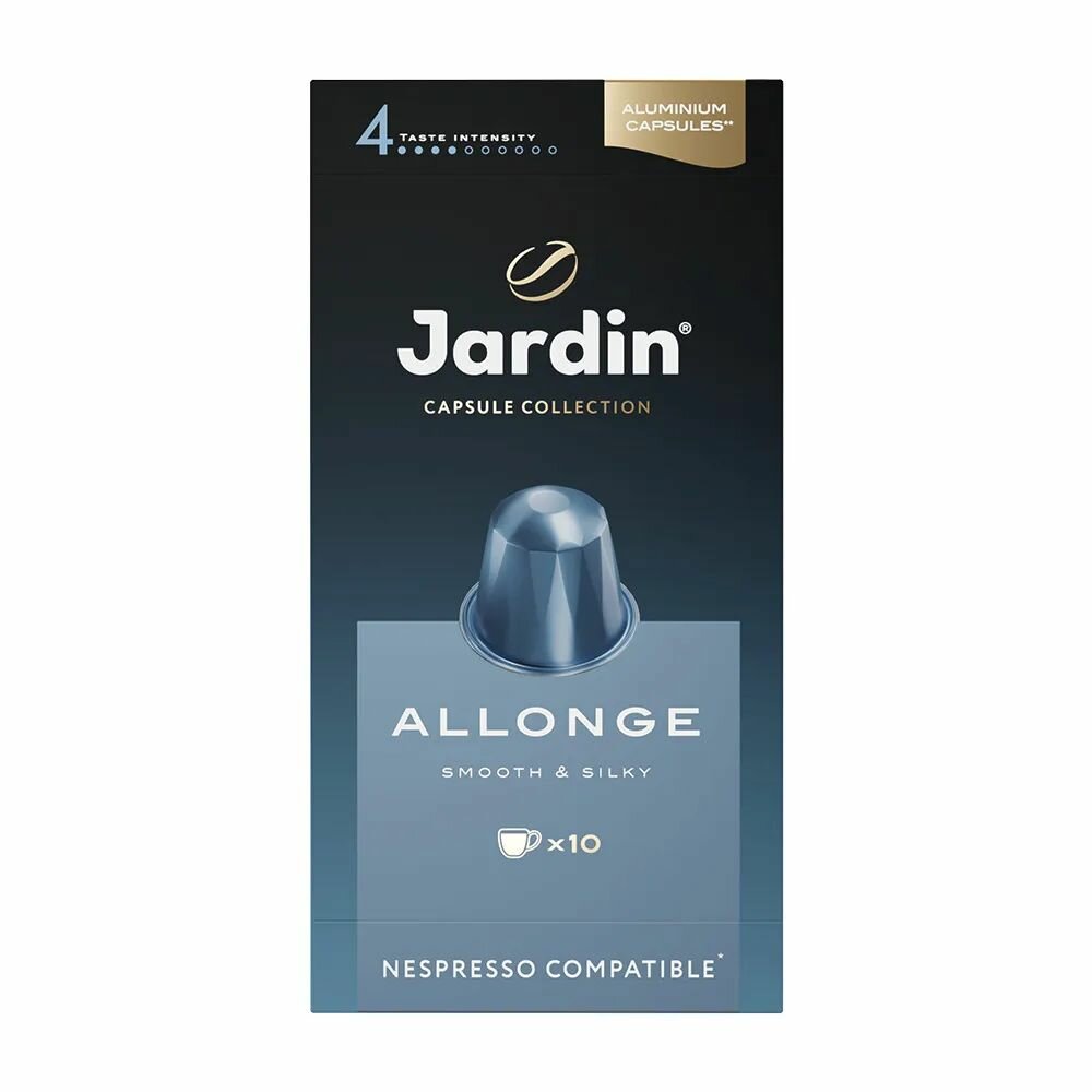 Кофе в капсулах Jardin Allonge представляет собой тщательно отобранный бленд восточноафриканской арабики. Упаковка содержит 10 алюминиевых капсул, общий вес которых составляет 55 г. Этот продукт предназначен для использования в капсульных кофемашинах стандарта Nespresso, за исключением машин серии U (U Pure, Umilk).