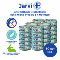 Купить Влажный корм Jarvi монопротеиновые консервы для собак и щенков всех пород с 3-х месяцев, Кролик 100 г х 30 шт. с доставкой по всей России.
