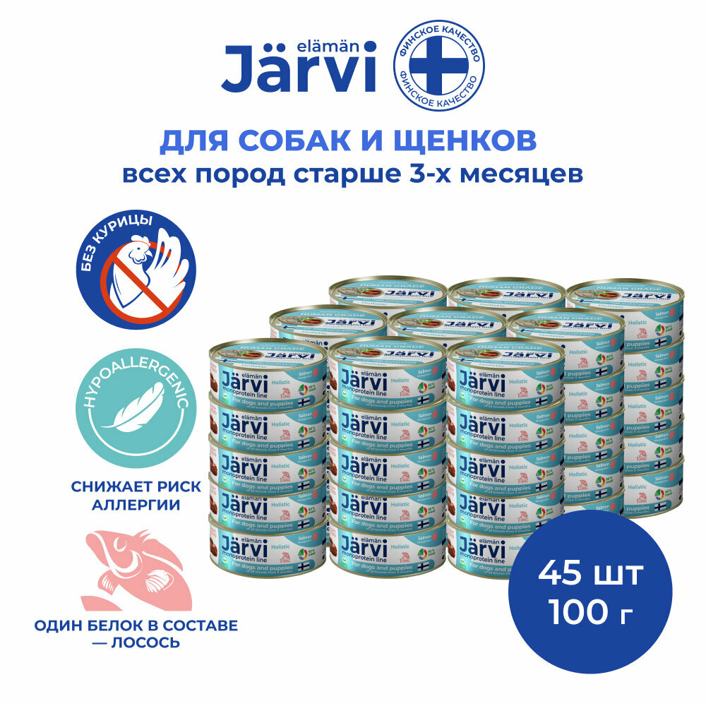 Влажный корм Jarvi монопротеиновые консервы для собак и щенков всех пород с 3-х месяцев, Лосось 100 г х 45 шт.: сравнение цен, характеристики, фото, актуальное наличие и цены.
