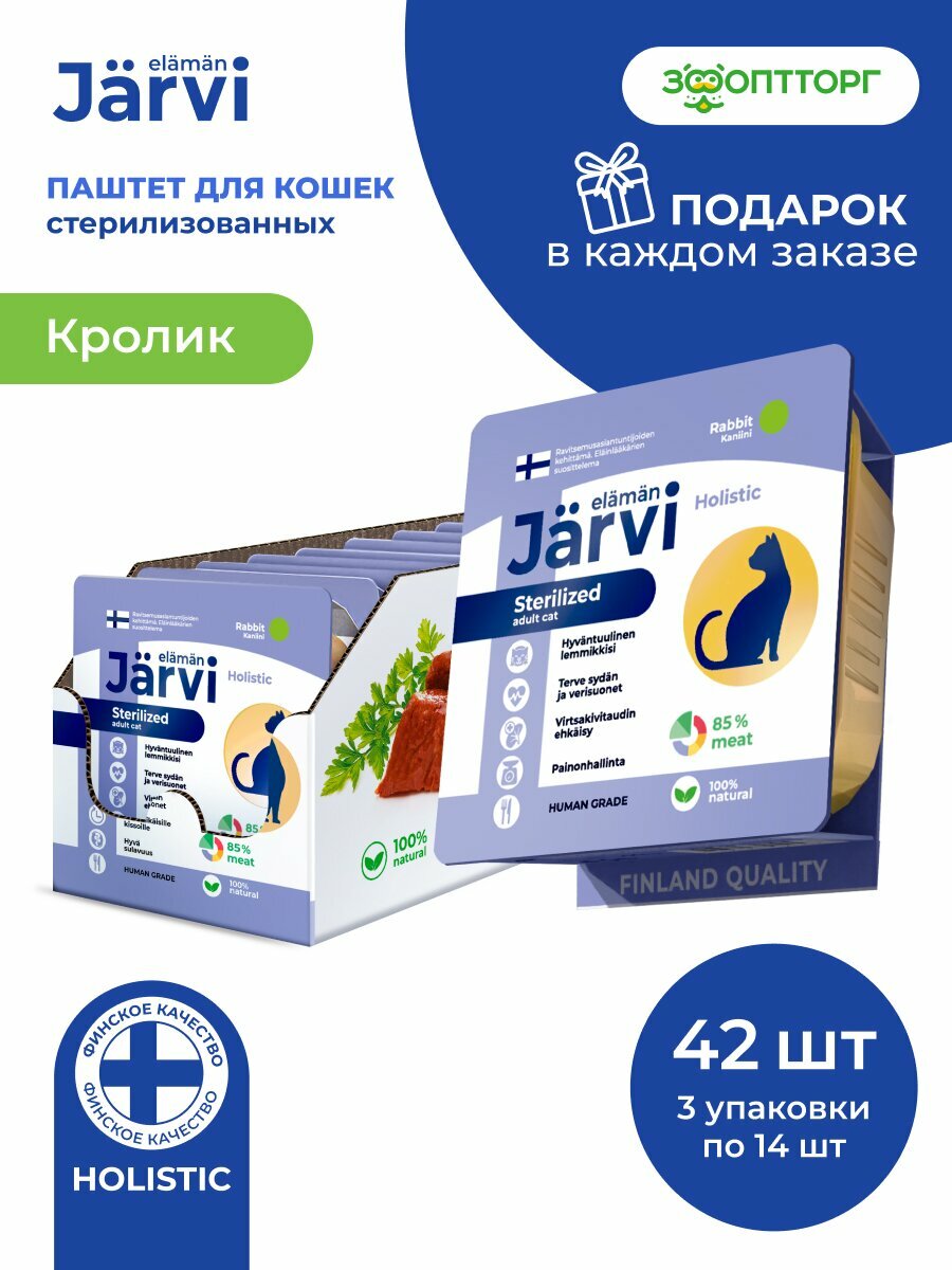 Влажный корм Jarvi мясной паштет для стерилизованных кошек с кроликом 100 г х 42 шт.: сравнение цен, характеристики, фото, актуальное наличие и цены.