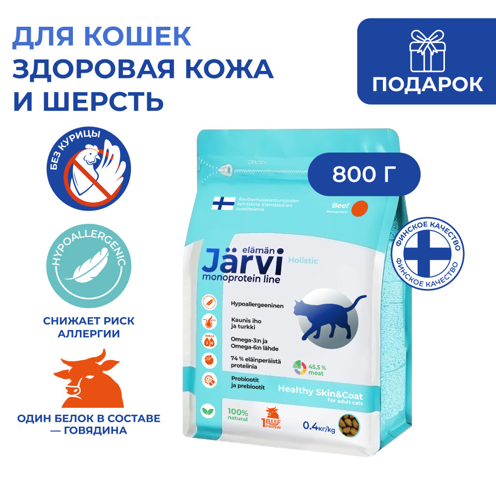 Сухой корм Jarvi монопротеиновый полнорационный для кошек для здоровой кожи и красивой шерсти Говядина, 800 г