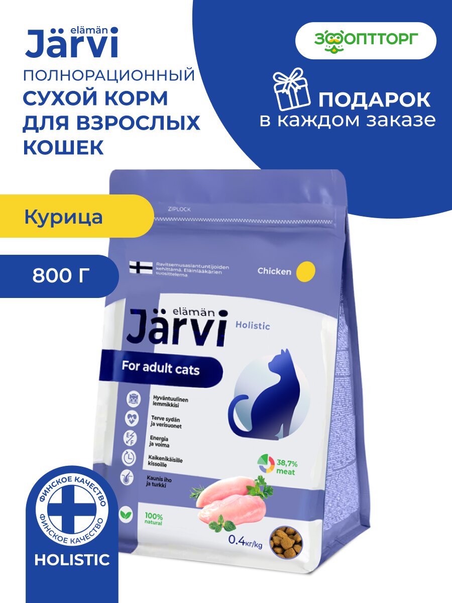 Сухой корм Jarvi полнорационный для взрослых кошек Курица, 800 г: сравнение цен, характеристики, фото, актуальное наличие и цены.