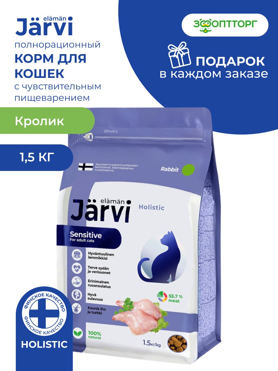 Купить Сухой корм Jarvi полнорационный для взрослых кошек с чувствительным пищеварением Кролик, 1,5 кг с доставкой по всей России.