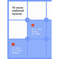 Мощный аккумулятор (500 мАч) гарантирует более 70 часов автономной работы, что позволит вам наслаждаться любимой музыкой без подзарядки в течение нескольких дней. Наушники оснащены функцией быстрого заряда: 5 минут зарядки обеспечат 3 часа непрерывной работы. В комплекте вы найдете кабель Type-C для подключения к USB-порту. При первом использовании рекомендуется установить бесплатное приложение JBL Headphones для настройки звука с помощью эквалайзера.