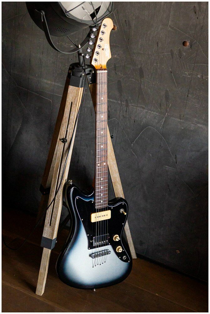 JET JJ-350 Baritone Moonburst - электрогитара баритон, цвет Moonburst Первый баритон в линейке JET JJ-350 Baritone разработан для создания потрясающих тонов для музыкантов, которые жаждут расширенной и отчетливой звуковой палитры. С корпусом из печеного тополя и грифом из печеного клена этот баритон оснащен универсальной конфигурацией звукоснимателей: мощный хамбакер в бридже и P90 в нэке. Накладка грифа из палисандра добавляет теплоты и плавности игры, идеально подходит для выступлений в расширенном диапазоне. Длина мензуры баритона обеспечивает глубокий, полный звук, идеально подходящий для жанров, требующих более низких настроек без ущерба для четкости. Эта модель сочетает в себе классическую эстетику с современными инновациями, что делает ее универсальным дополнением к арсеналу любого гитариста. Поразительная отделка Moonburst добавляет нотку космической элегантности. Технические характеристики: Тип корпуса: Jaguar Баритон Материал корпуса: тополь запеченный Материал грифа: канадский печеный клен Профиль грифа: Modern C Накладка на гриф: палисандр Радиус: 9,5" Ширина верхнего порожка: 41,91 мм (1,65") Порожек: PPS Анкерный стержень двойного действия Мензура: 685,8 мм (27") Количество ладов: 22 Звукосниматели: H Ceramic (спецификация JET), никелевые крышки, P90 Бридж: фиксированный, струны сквозь корпус Управление: 1V, 1T, 3-х позиционный переключатель Фурнитура: хром Накладка: черная Цвет: Moonburst / лунное затмение Характеристики: Материал корпуса: тополь запеченныйЗвукосниматели: HPКоличество струн: 6Материал накладки грифа: палисандрМатериал грифа: клен запеченныйКоличество ладов, шт: 22Материал топа: тополь запеченныйКрепление грифа: на болтахТип бриджа: ФиксированныйСтрана происхождения: китайдля Начинающих: Дадля Профессионалов: ДаМатериал струн: металлРегулировки звука: 1V 1TФорма корпуса: JaguarМензура, мм: 685,8 ммСерия: JET 350Радиус накладки грифа: 9.5Профиль грифа: Modern "C"