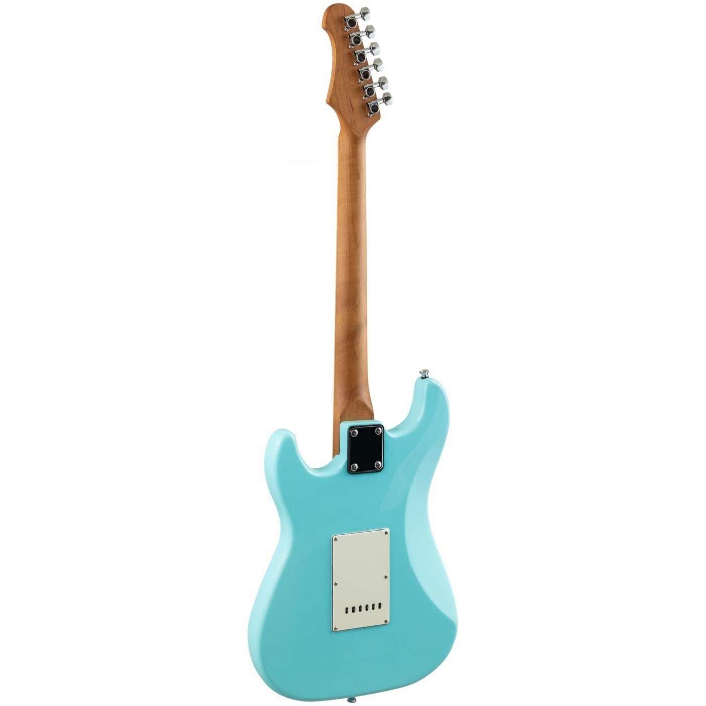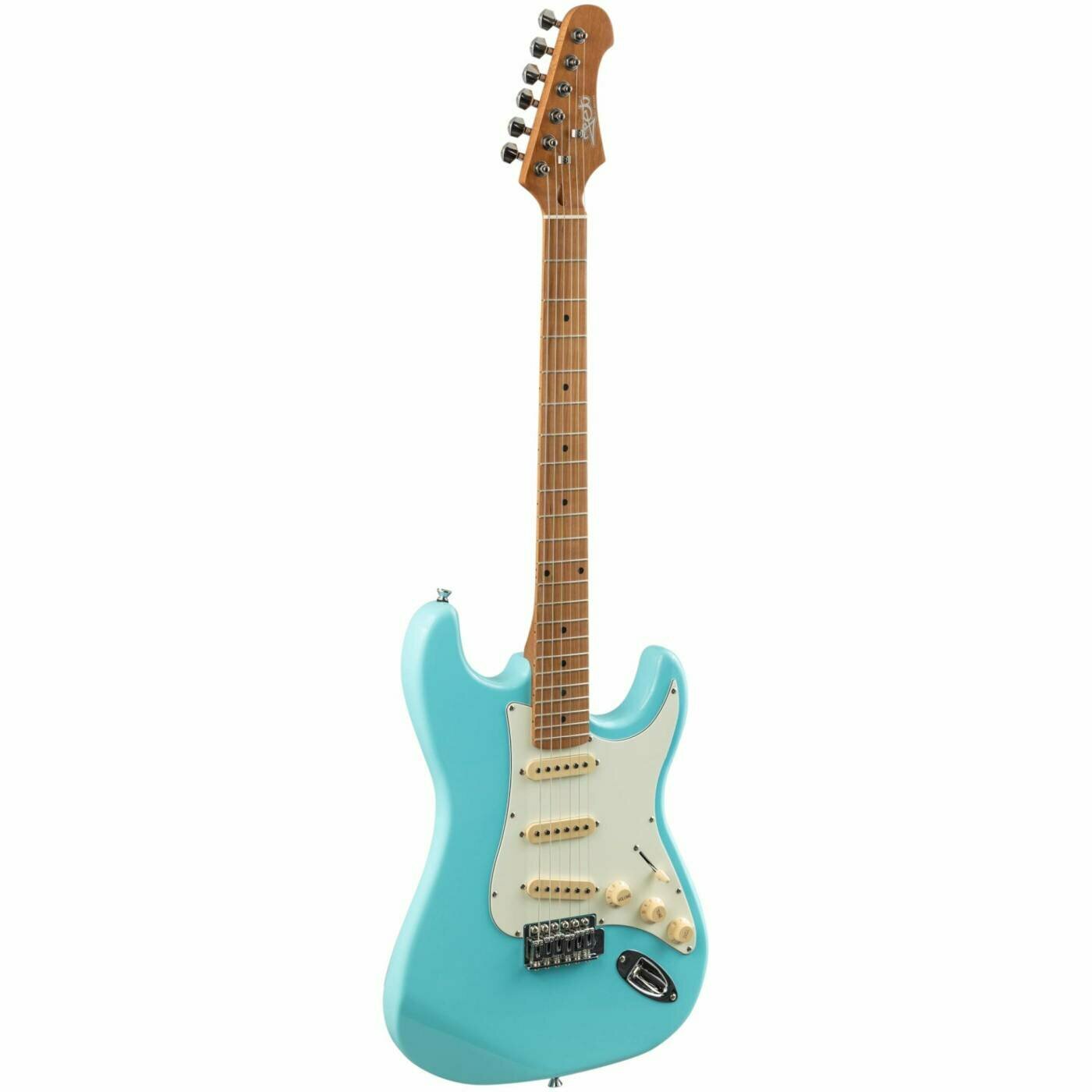 JET JS-200 BL - Электрогитара JET JS-200 это инструмент в классической и самой популярной форме корпуса - cтратокастер с конфигурацией звукоснимателей SSS. У инструментов JS-200 профиль грифа - Modern C. Это наиболее распространенный современный профиль грифа, у таких грифов удобный овальный профиль, который подходит для большинства стилей игры. Гриф и накладка на гриф выполнены из печеного клена (roasted maple). При такой обработке поры дерева максимально сжимаются и в процессе использования вода уже не будет выходить, ваша накладка не сожмется и лады не повылазят вне зависимости от влажности и смены температуры. Плюс такое дерево выглядит очень красиво. Технические характеристики: Тип корпуса: стратокастер Колки: хром Материал грифа: канадский печеный клен Профиль грифа: Modern C Накладка на гриф: печеный клен Радиус: 9,5" Ширина верхнего порожка: 41,91 мм (1,65") Порожек: кость Анкерный стержень двойного действия Мензура: 647,7 мм (25,5") Количество ладов: 22 Материал корпуса: тополь Накладка / пикгард: цвета пергамента Звукосниматели: SSS Ceramic Бридж: Tremolo Управление: 1V, 2T, 5-ти позиционный переключатель Фурнитура: хром Цвет: Daphne Blue / голубой