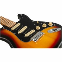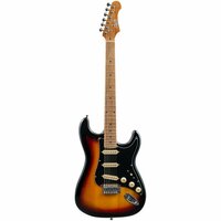 JET JS-200 SB - Электрогитара JET JS-200 это инструмент в классической и самой популярной форме корпуса - cтратокастер с конфигурацией звукоснимателей SSS. У инструментов JS-200 профиль грифа - Modern C. Это наиболее распространенный современный профиль грифа, у таких грифов удобный овальный профиль, который подходит для большинства стилей игры. Гриф и накладка на гриф выполнены из печеного клена (roasted maple). При такой обработке поры дерева максимально сжимаются и в процессе использования вода уже не будет выходить, ваша накладка не сожмется и лады не повылазят вне зависимости от влажности и смены температуры. Плюс такое дерево выглядит очень красиво. Технические характеристики: Тип корпуса: стратокастер Колки: хром Материал грифа: канадский печеный клен Профиль грифа: Modern C Накладка на гриф: печеный клен Радиус: 9,5" Ширина верхнего порожка: 41,91 мм (1,65") Порожек: кость Анкерный стержень двойного действия Мензура: 647,7 мм (25,5") Количество ладов: 22 Материал корпуса: тополь Накладка / пикгард: черный Звукосниматели: SSS Ceramic Бридж: Tremolo Управление: 1V, 2T, 5-ти позиционный переключатель Фурнитура: хром Цвет: Sunburst / санберст