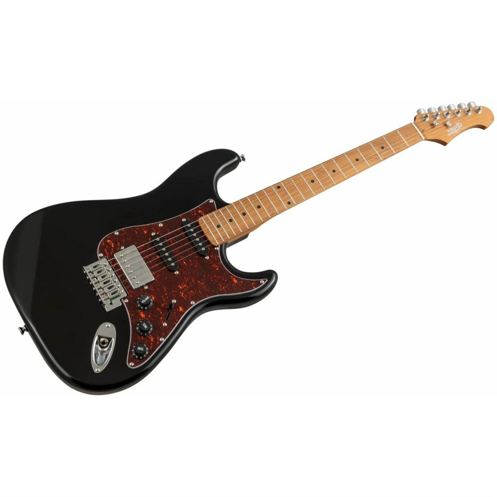 JET JS-250 BK - электрогитара, Stratocaster, корпус тополь, 22 лада, HSS, tremolo, цвет BK JET - это бренд электрогитар, созданный чтобы удовлетворить музыкантов всех уровней и способностей. Вдохновленные классическими электрогитарами высочайшего класса, гитары JET предлагают современный подход к дизайну и стилю со свежим и впечатляющим выбором цветов, отделки и высококачественной древесины. Самое главное, гитары JET дадут вам превосходные впечатления от игры по доступной цене. У инструментов JS-250 профиль грифа - Modern C. Это наиболее распространенный современный профиль грифа, у таких грифов удобный овальный профиль, который подходит для большинства стилей игры. Гриф и накладка на гриф выполнены из печеного клена (roasted maple). При такой обработке поры дерева максимально сжимаются и в процессе использования вода уже не будет выходить, ваша накладка не сожмется и лады не повылазят вне зависимости от влажности и смены температуры. Плюс такое дерево выглядит очень красиво. Технические характеристики: Колки: хром Материал грифа: канадский печеный клен Профиль грифа: Modern C Накладка на гриф: печеный клен Радиус: 9,5" Ширина верхнего порожка: 41,91 мм (1,65") Порожек: кость Анкерный стержень двойного действия Мензура: 647,7 мм (25,5") Количество ладов: 22 Материал корпуса: тополь Накладка / пикгард: черепахового цвета Звукосниматели: HSS Ceramic Бридж: Tremolo Управление: 1V, 1T, 5-ти позиционный переключатель Фурнитура: хром Цвет: Black / черный Характеристики: Материал корпуса: топольЦвет: черныйЗвукосниматели: HSSКоличество струн: 6Материал накладки грифа: печеный кленМатериал грифа: клен запеченныйКоличество ладов, шт: 22Материал топа: топольКрепление грифа: на болтахТип бриджа: тремолоРекомендуем: ДаСтрана происхождения: китайдля Начинающих: Дадля Обучения: ДаМатериал струн: металлДля панка: ДаРегулировки звука: 1V 2TФорма корпуса: СтратокастерМензура, мм: 648 ммСерия: JET 250Радиус накладки грифа: 9.5Профиль грифа: Modern "C"