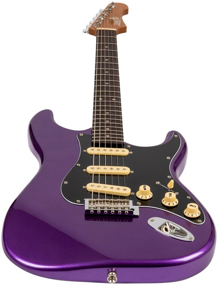 JET JS-300 PLM R - электрогитара, Stratocaster, JET - это бренд электрогитар, созданный чтобы удовлетворить музыкантов всех уровней и способностей. Вдохновленные классическими электрогитарами высочайшего класса, гитары JET предлагают современный подход к дизайну и стилю со свежим и впечатляющим выбором цветов, отделки и высококачественной древесины. Самое главное, гитары JET дадут вам превосходные впечатления от игры по доступной цене. JET JS-300 - это инструмент в классической и самой популярной форме корпуса - Стратокастер. У инструментов JS-300 профиль грифа - Modern C. Это наиболее распространенный современный профиль грифа, у таких грифов удобный овальный профиль, который подходит для большинства стилей игры. Гриф выполнен из канадского печеного клена (roasted maple). При такой обработке поры дерева максимально сжимаются и в процессе использования вода уже не будет выходить, ваша накладка не сожмется и лады не повылазят вне зависимости от влажности и смены температуры. Плюс такое дерево выглядит очень красиво. У инструментов с маркировкой R накладка на гриф выполнена из палисандра. Технические характеристики: Тип корпуса: стратокастерКолки: хромМатериал грифа: канадский кленПрофиль грифа: Modern CНакладка на гриф: палисандрРадиус: 9,5"Ширина верхнего порожка: 41,91 мм (1,65")Порожек: PPSАнкерный стержень двойного действияМензура: 647,7 мм (25,5")Количество ладов: 22Материал корпуса: тополь запеченныйЗвукосниматели: SSS CeramicБридж: TremoloУправление: 1V, 2T, 5-ти позиционный переключательФурнитура: хромЦвет: фиолетовый / Plum Характеристики: Материал корпуса: тополь запеченныйЗвукосниматели: SSSКоличество струн: 6Материал грифа: клен запеченныйКоличество ладов, шт: 22Материал топа: тополь запеченныйКрепление грифа: на болтахТип бриджа: тремолоНовинки: ДаСтрана происхождения: китайдля Начинающих: ДаМатериал струн: металлДля панка: ДаРегулировки звука: 1V 2TФорма корпуса: СтратокастерМензура, мм: 648 ммСерия: JET 300Радиус накладки грифа: 9.5Профиль грифа: Modern "C"