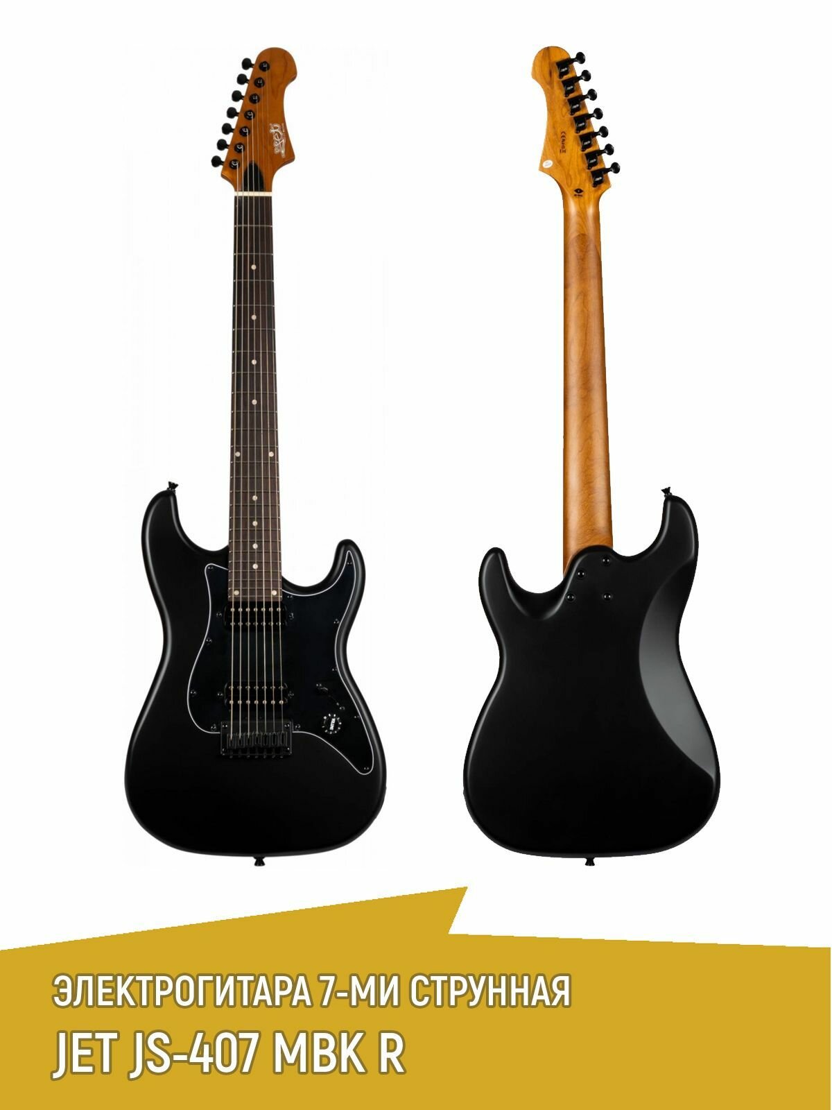 Электрогитара 7-струнная JET JS-407 MBK R, Stratocaster, цвет черный матовый: сравнение цен, характеристики, фото, актуальное наличие и цены.