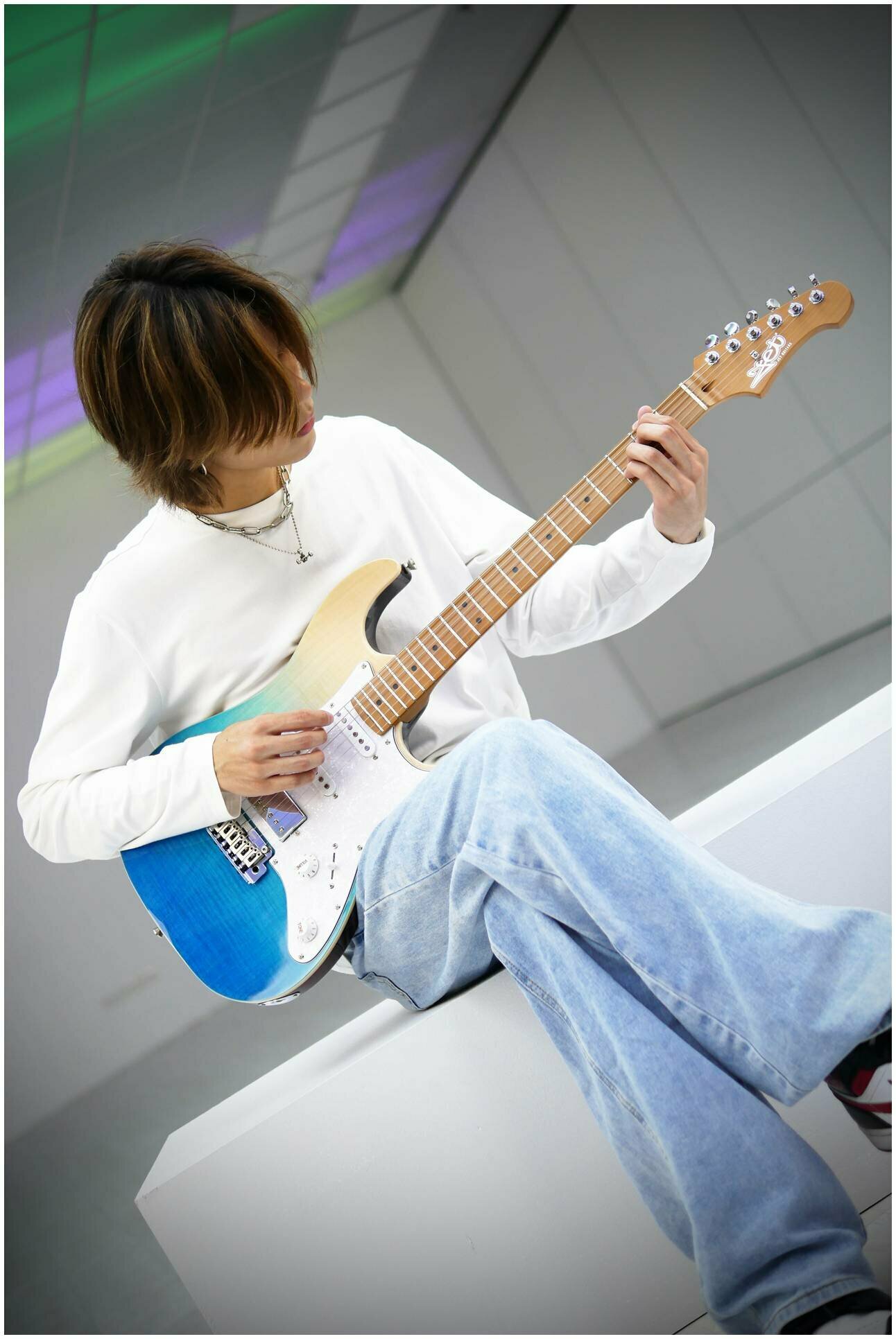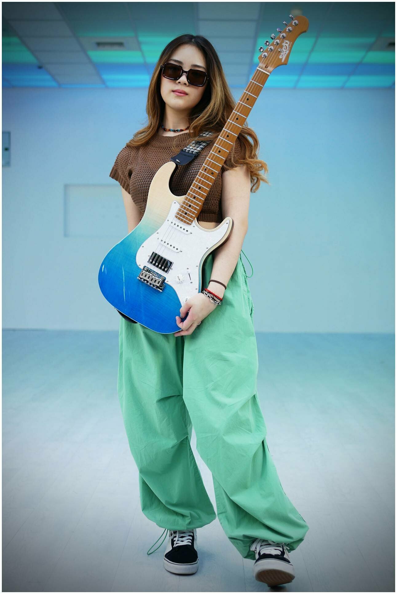 Накладка на гриф выполнена из печеного клена (roasted maple). При такой обработке поры дерева максимально сжимаются и в процессе использования вода уже не будет выходить, ваша накладка не сожмется и лады не повылазят вне зависимости от влажности и смены температуры. Плюс такое дерево выглядит очень красиво.