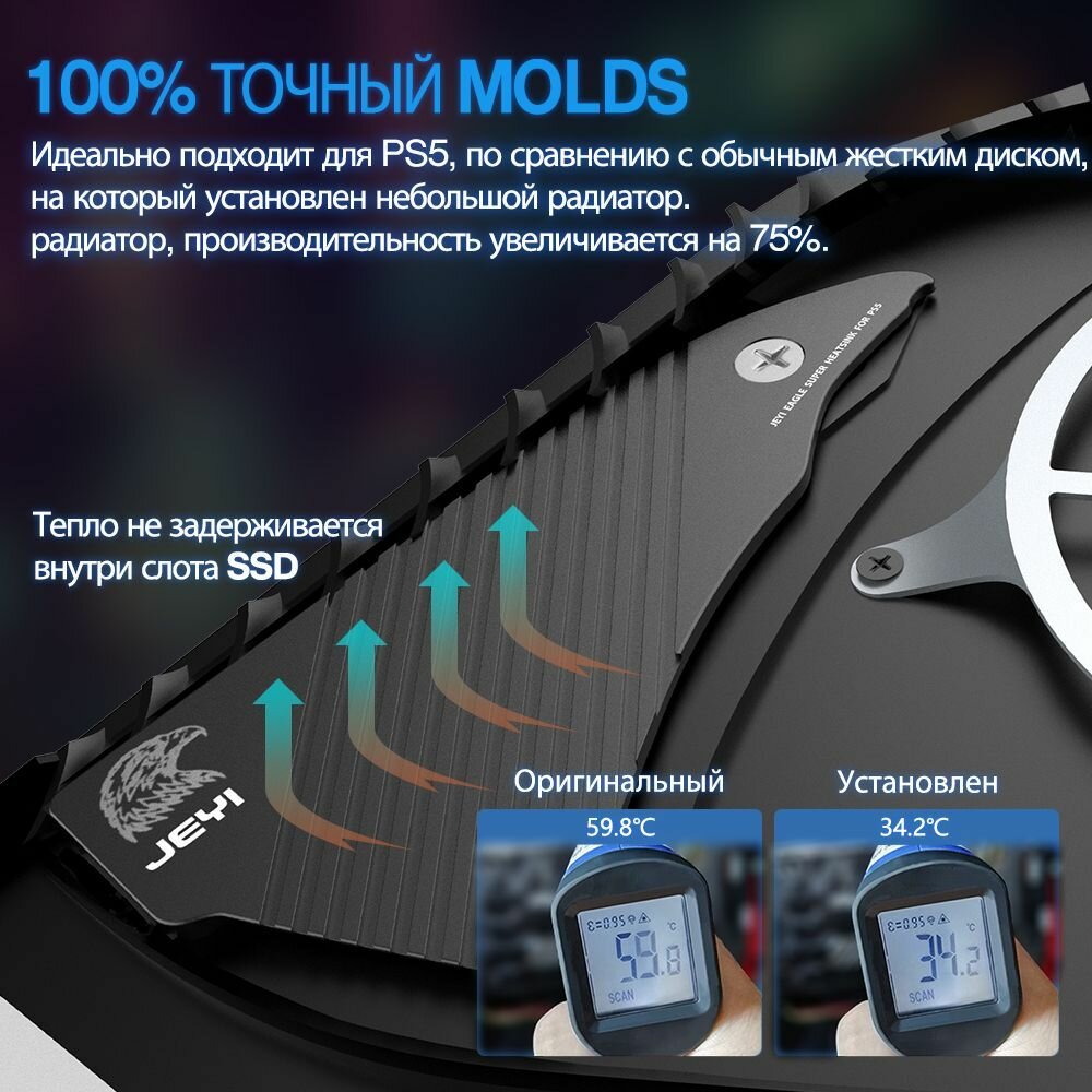 JEYI PS5 Eagle I Оригинальный кулер JEYI PS5 Eagle создан для пиковой производительности. Попрощайтесь с проблемами перегрева, ведь он эффективно охлаждает вашу PS5, обеспечивая длительные игровые сессии без проблем. Обеспечьте бесперебойную работу вашей консоли и поддерживайте первоклассный игровой процесс.