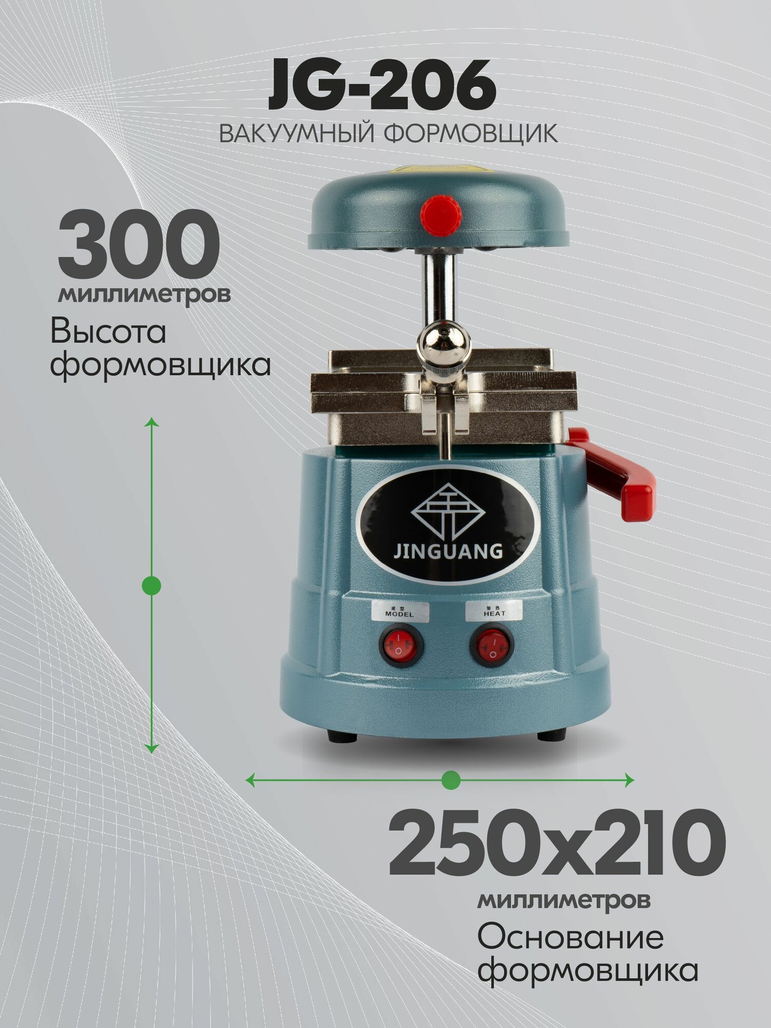 JG-206 – это портативный вакуумный формовщик для изготовления индивидуальных капп, пластмассовых оттисков и зубопротезных изделий различного назначения.