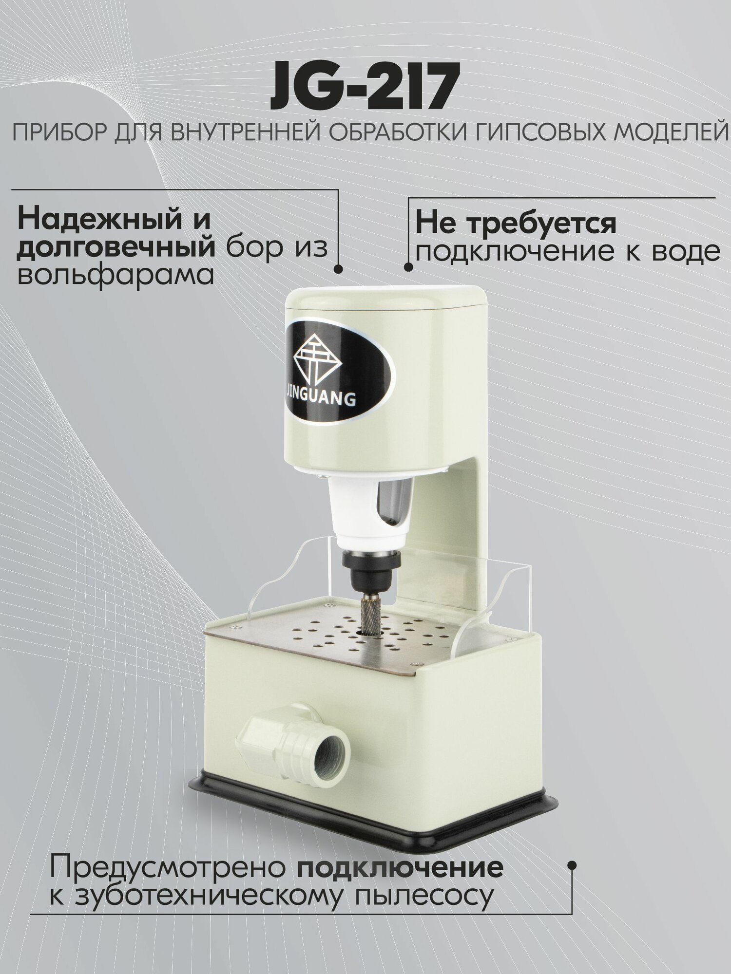 Прибор для внутренней обработки моделей JG-217 позволяет быстро, точно и гладко обрабатывать лингвальные (внутренние) поверхности гипсовых моделей зубных рядов.