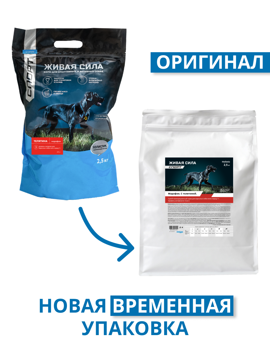 Купить Живая сила Спорт, Марафон корм для собак всех пород с высокими нагрузками с телятиной и лососем, Крупная гранула (2,5 кг) с доставкой по всей России. Живая сила Спорт, Марафон корм для собак всех пород с высокими нагрузками с телятиной и лососем, Крупная гранула (2,5 кг): сравнение цен, характеристики, фото, актуальное наличие и цены.