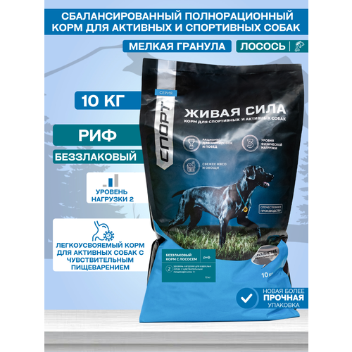 JJSPORT_ЖИВАЯ сила Риф сухой полнорационный беззерновой корм для взрослых собак с 1 года, лосось, Мелкая гранула (10 кг): сравнение цен, характеристики, фото, актуальное наличие и цены.
