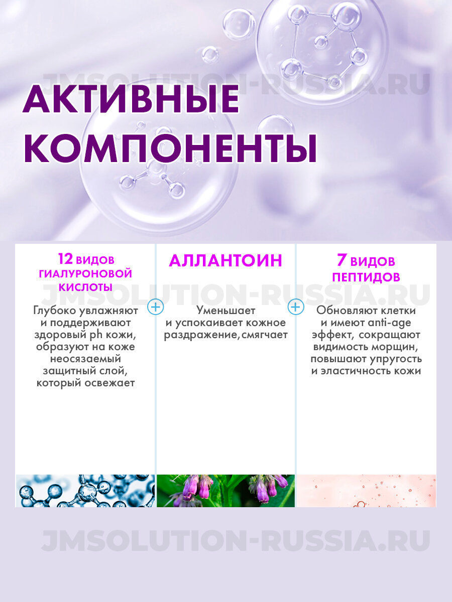 | Состав | Water, Glycerin, Glycereth-26, Methylpropanediol, Dipropylene Glycol, Carbomer, Arginine, Hydroxyethyl Urea, Polyglyceryl-10 Laurate, Allantoin, Xanthan Gum, Hydroxyethylcellulose, Panthenol, Betaine, Butylene Glycol, Dipotassium Glycyrrhizate, Centaurea Cyanus Flower Extract, Sodium Hyaluronate, Hydrangea Macrophylla Leaf Extract, Hydrolyzed Hyaluronic Acid, Hydrolyzed Sodium Hyaluronate, Saccharomyces Polypeptides, Hydroxypropyltrimonium Hyaluronate, Glycine Max (Soybean) Polypeptide, Sodium Acetylated Hyaluronate, Dimethylsilanol Hyaluronate, Acetyl Hexapeptide -8, Sodium Hyaluronate Crosspolymer, Hyaluronic Acid, Pentylene Glycol, Potassium Hyaluronate, Palmitoyl Pentapeptide 4, Palmitoyl Tripeptide 5, Palmitoyl Tripeptide-1. Acetyl Tetrapeptide 5, Hydroxyacetophenone, Caprylyl Glycol, Ethylhexylglycerin, Disodium EDTA, 1,2 Hexanediol |