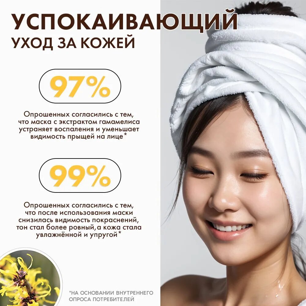 | Способ применения | Рекомендуется использовать после этапов очищения и тонизирования. Достаньте маску из упаковки, разверните и распределите по лицу. Оставьте на 10-20 минут, затем удалите лист и мягко вбейте остатки эссенции в кожу. Подходит для сухой, нормальной и комбинированной кожи. |