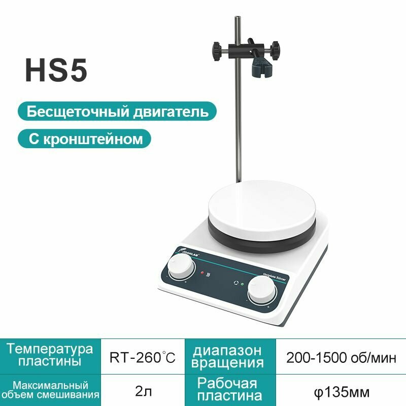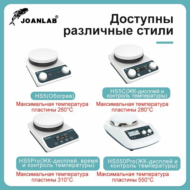 JOANLAB Магнитная мешалка с подогревом, лабораторная, 2 л, 1500 об/мин, HS5: сравнение цен, характеристики, фото, актуальное наличие и цены.