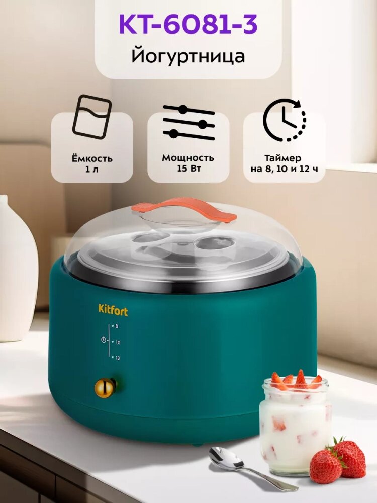 Йогуртница Kitfort KT-6081, нержавеющая сталь, 1 л, таймер до 12 ч, мощность 15 Вт: сравнение цен, характеристики, фото, актуальное наличие и цены.