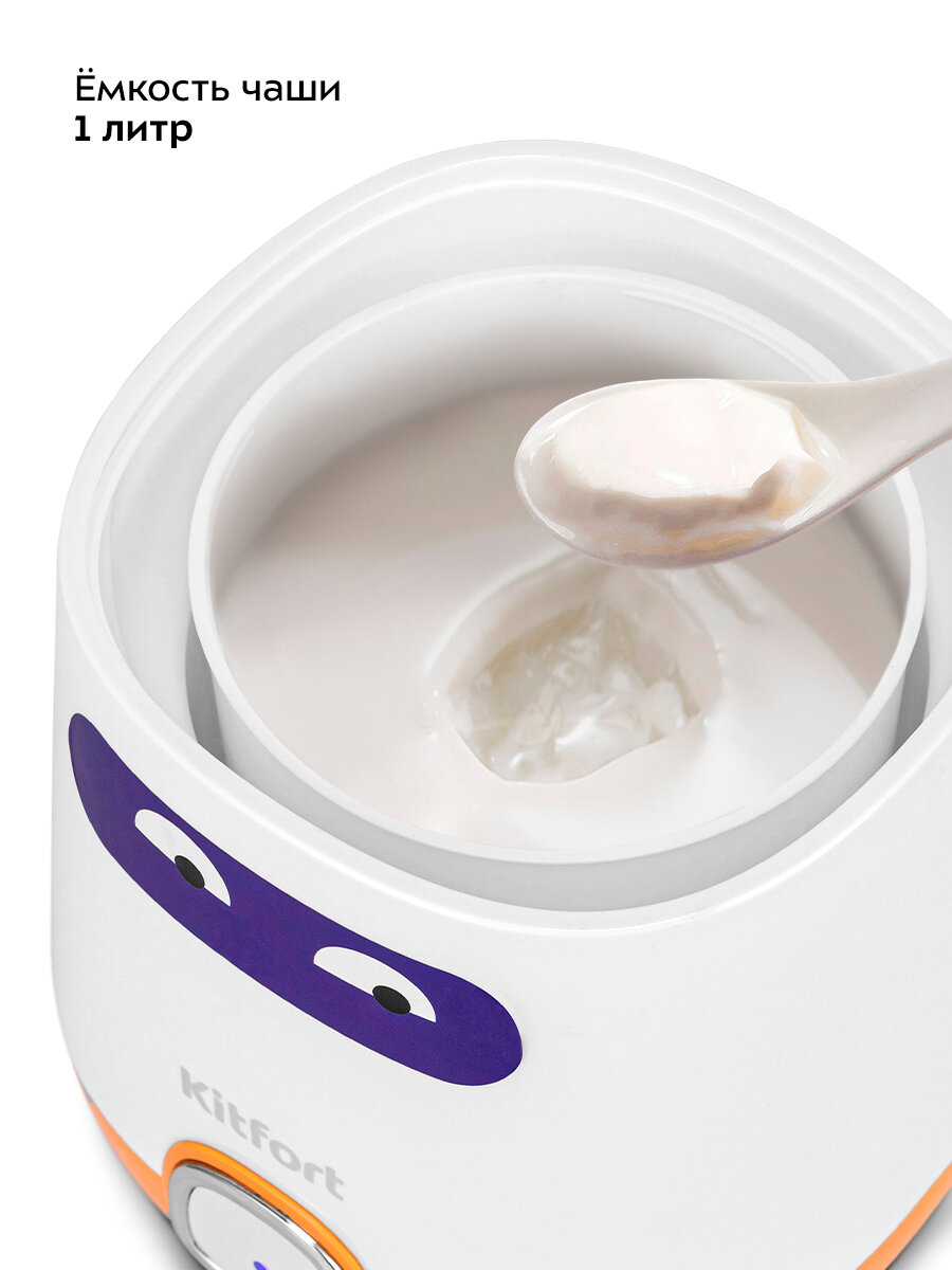 Йогурт у вас дома Йогуртница КТ-6403 предназначена для приготовления вкусного и полезного домашнего йогурта. Прибор укомплектован чашей ёмкостью 1 л с крышкой. Готовый йогурт можно хранить в холодильнике прямо в чаше.