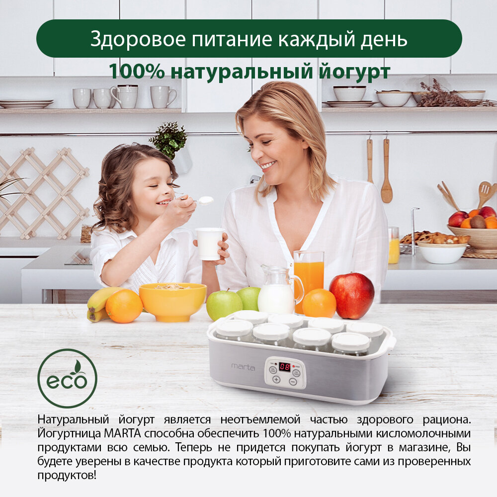 Купить Йогуртница MARTA MT-1854, электронная, таймер до 48 ч, 8 баночек, 180 г, 230 Вт с доставкой по всей России.
