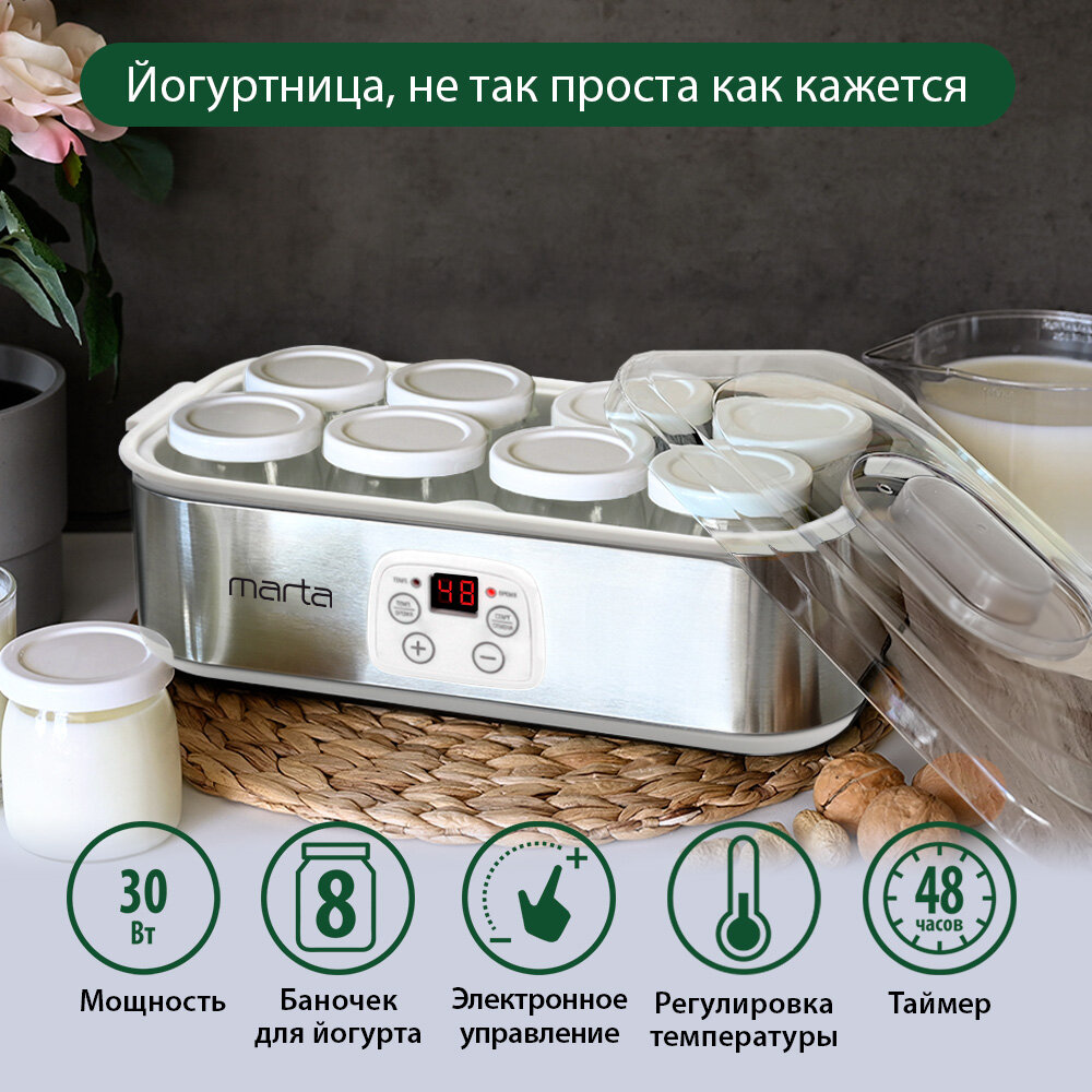 Йогуртница MARTA MT-1854, электронная, таймер до 48 ч, 8 баночек, 180 г, 230 Вт: сравнение цен, характеристики, фото, актуальное наличие и цены.