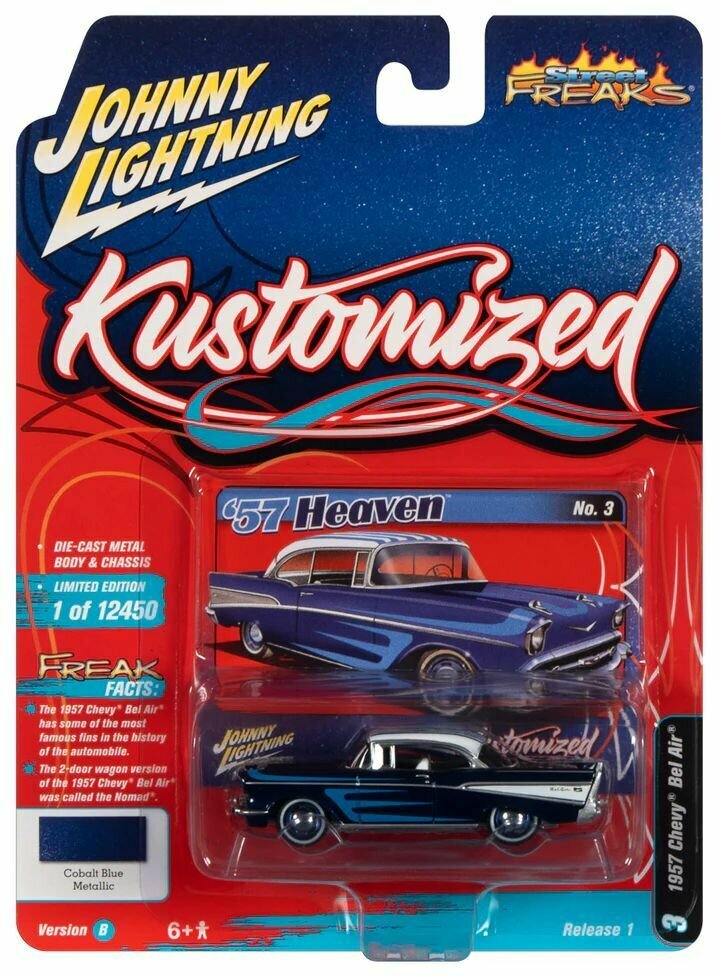 Johnny Lightning 1957 Chevrolet Bel Air Cobalt Blue Metallic (серия Street Freaks, JLSP230B) — коллекционная машинка: сравнение цен, характеристики, фото, актуальное наличие и цены.
