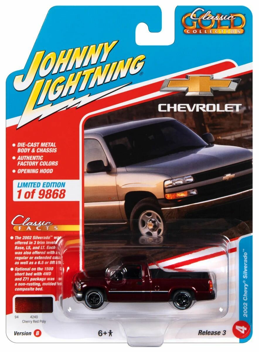 Johnny Lightning 2002 Chevrolet Silverado Dark Red Metallic (серия Classic Gold, JLSP281B) — коллекционная машинка: сравнение цен, характеристики, фото, актуальное наличие и цены.