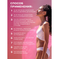 Мусс легко распределяется по коже, обеспечивая равномерное покрытие и быстрое высыхание. Его легкая текстура предотвращает появление полос и пятен, делая процесс нанесения максимально комфортным. Вы сможете получить заметный результат всего за несколько часов, что идеально подходит для спонтанных мероприятий или особых случаев.