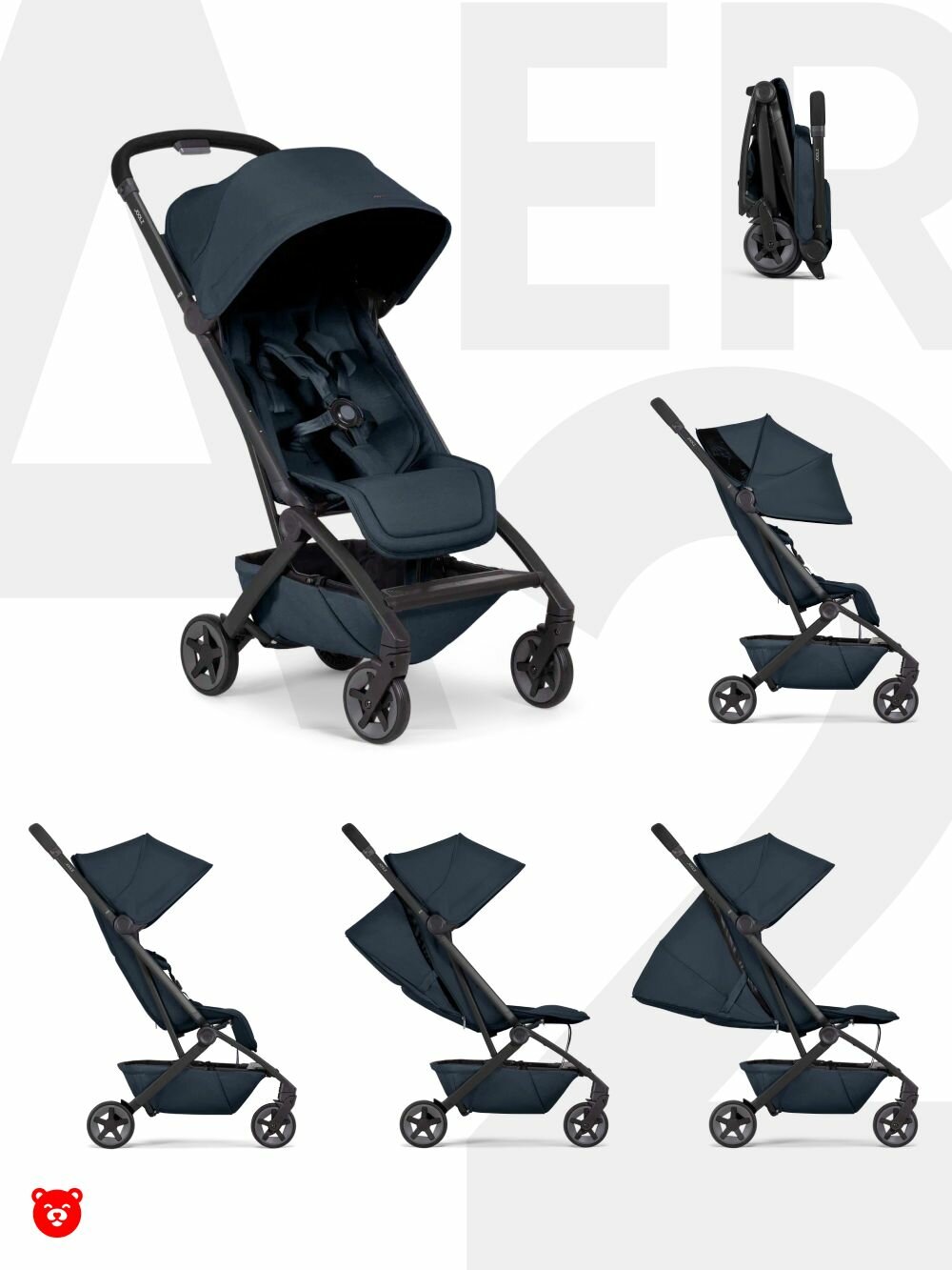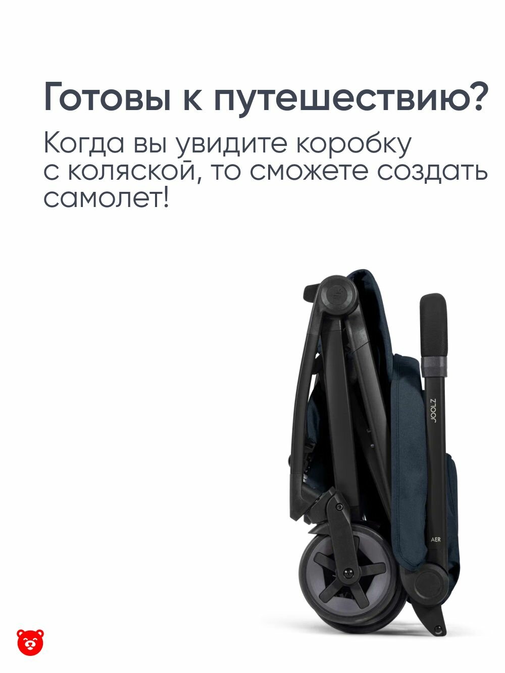 Joolz Aer2 подходит для путешествий, так как ее размеры в сложенном виде составляют всего 53х44х23 см.
