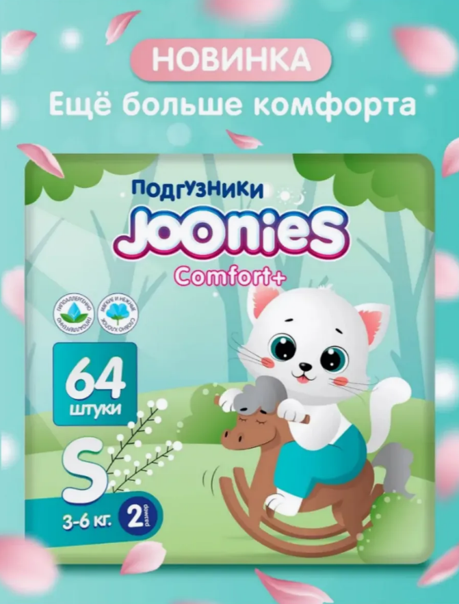 Купить Joonies Comfort+ Подгузники размер S (3-6 кг) 64 шт с доставкой по всей России. Joonies Comfort+ Подгузники размер S (3-6 кг) 64 шт: сравнение цен, характеристики, фото, актуальное наличие и цены.