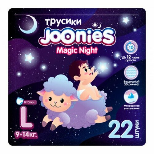 Купить Joonies Magic Night Подгузники-трусики, размер L (9-14 кг), 22 шт с доставкой по всей России. Joonies Magic Night Подгузники-трусики, размер L (9-14 кг), 22 шт: сравнение цен, характеристики, фото, актуальное наличие и цены.