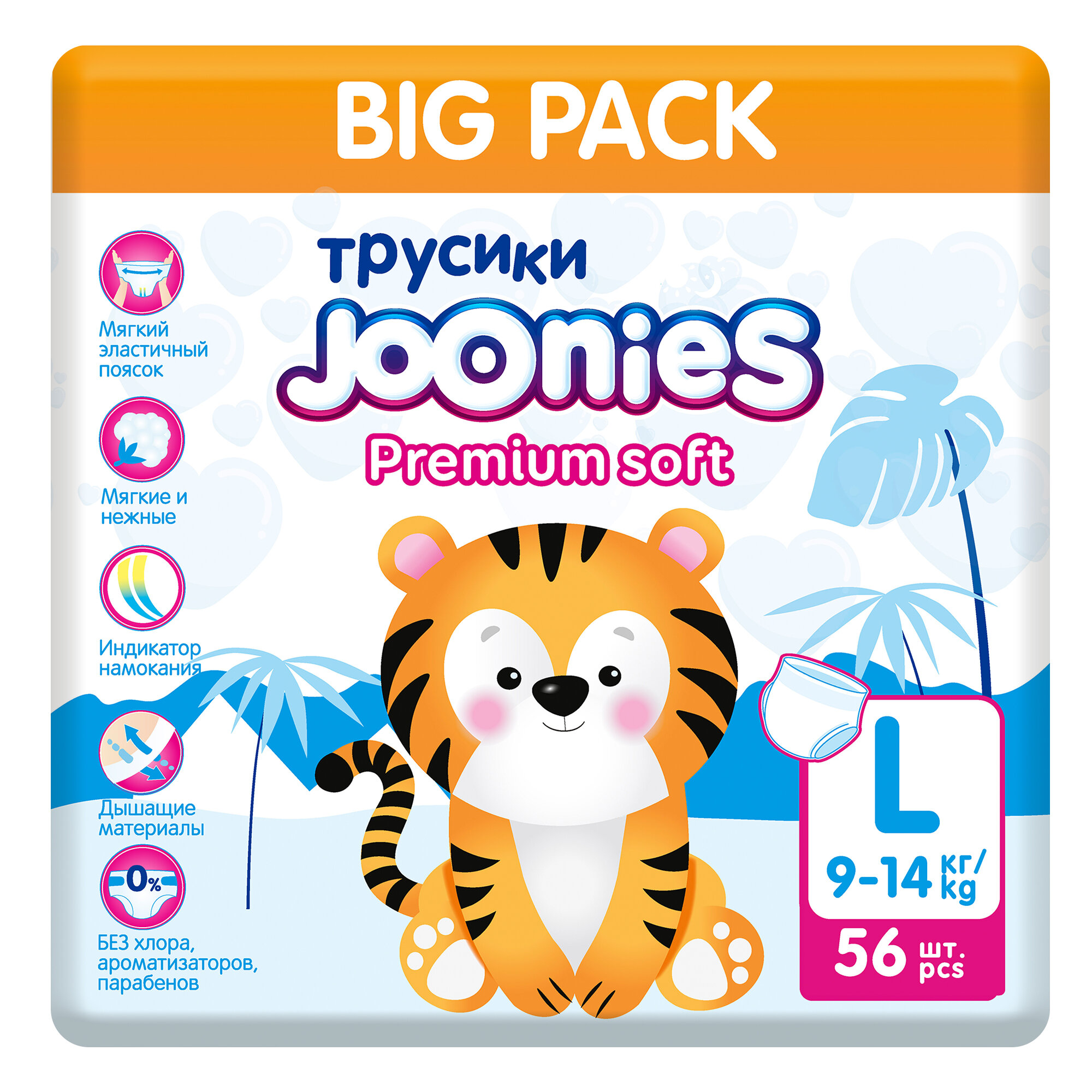 JOONIES Premium Soft Подгузники-трусики, размер L (9-14 кг), MEGA PACK 56 шт.: сравнение цен, характеристики, фото, актуальное наличие и цены.
