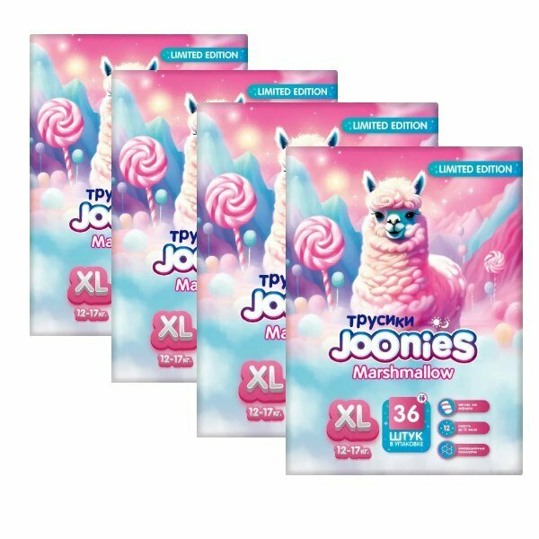 Купить Набор 4 х Joonies Marshmallow трусики XL (12-17 кг) 36 шт с доставкой по всей России. Набор 4 х Joonies Marshmallow трусики XL (12-17 кг) 36 шт: сравнение цен, характеристики, фото, актуальное наличие и цены.