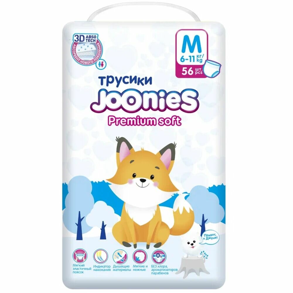 - Впитывающий слой подгузников-трусиков TM JOONIES PremiumSoft состоит из премиального современного абсорбента, воздушной целлюлозы и воздушного нетканого материала, благодаря чему абсорбирующий слой не раздувается и не комкается. Сколько бы ребенок ни прыгал, внутренний слой подгузников-трусиков TM JOONIES Premium Soft останется на месте.