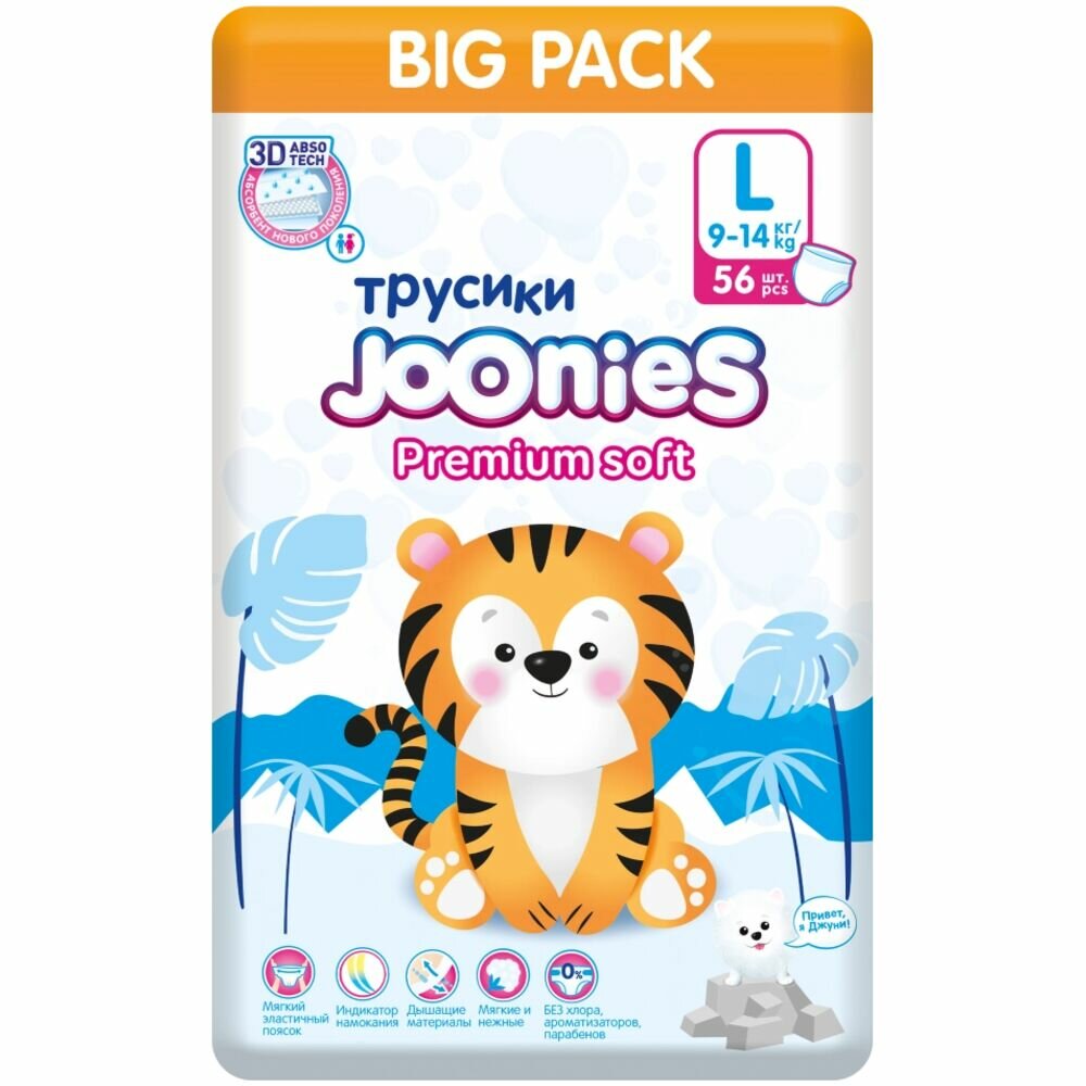 Купить Joonies Трусики Premium Soft MEGA PACK, L (9-14 кг.), 56 шт, 4 упаковки с доставкой по всей России. Joonies Трусики Premium Soft MEGA PACK, L (9-14 кг.), 56 шт, 4 упаковки: сравнение цен, характеристики, фото, актуальное наличие и цены.