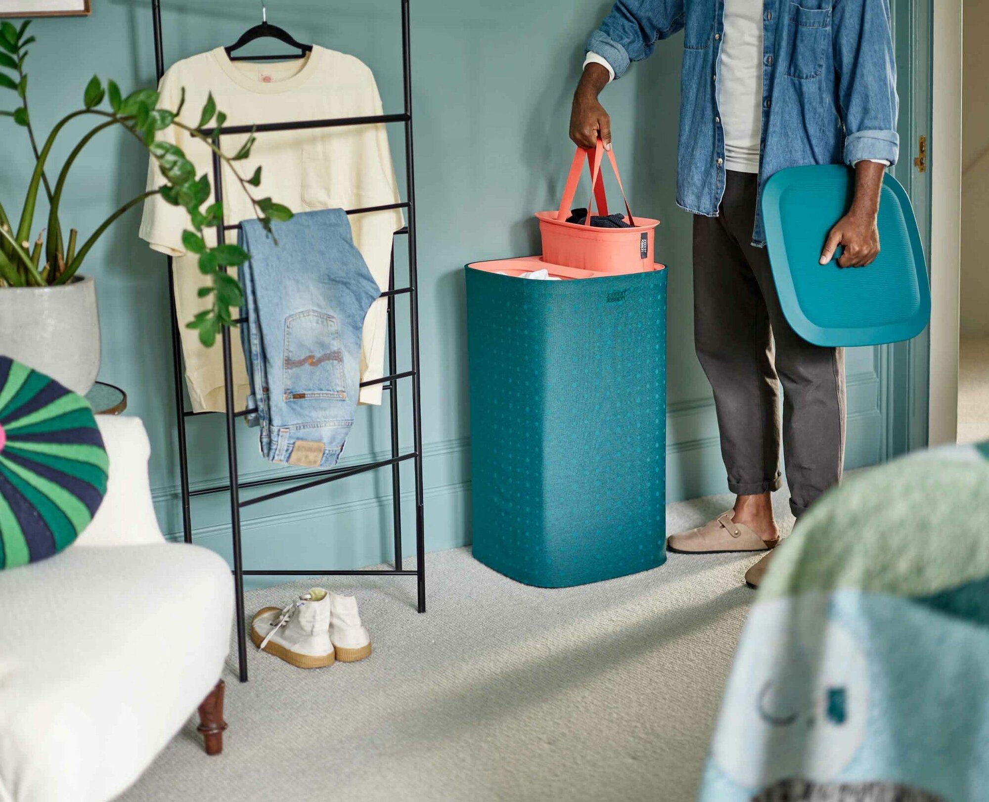 Корзина для белья 60 л, JOSEPH JOSEPH 50022. Готовы ли вы прогнать тоску, вызванную стиркой? Познакомьтесь с Tota, нашей умной и стильной корзиной для белья. Благодаря наличию двух отделений и съемных мешков для переноски Tota позволяет сократить время и силы, необходимые для разделения белья и переноски тяжелых вещей в стиральную машину. Выпускается в различных цветах, которые идеально впишутся в любую спальню, ванную комнату или подсобное помещение.