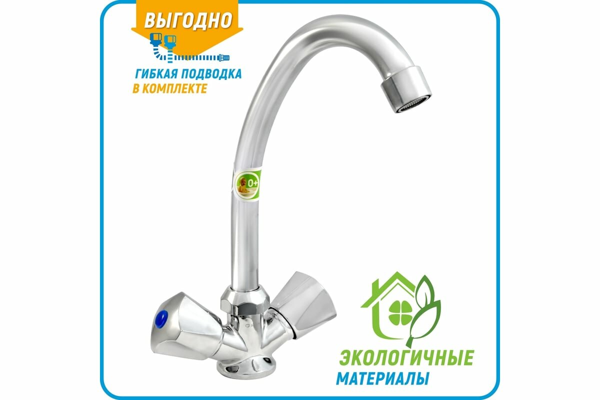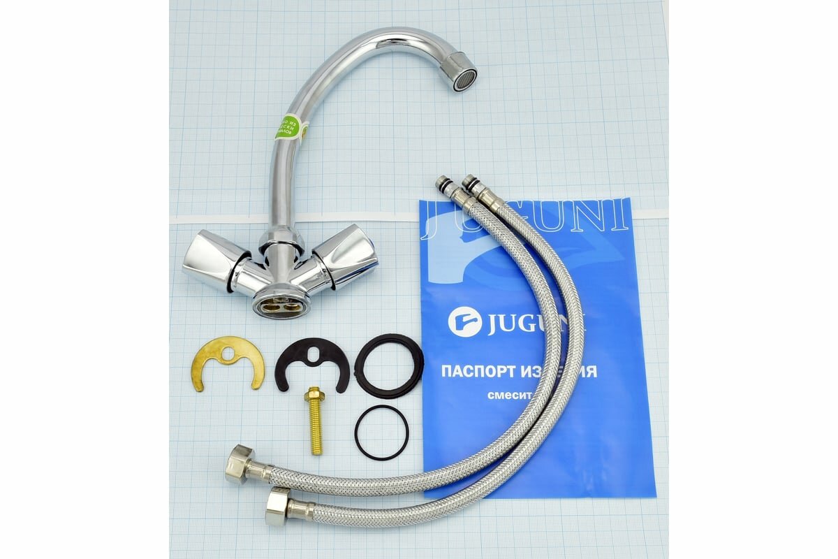 Juguni Смеситель для мойки двуручный, JGN0430, кран-букса рез, хром/мах. 0402.644: сравнение цен, характеристики, фото, актуальное наличие и цены.