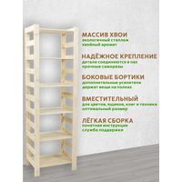 Стеллаж выполнен из массива дерева, что обеспечивает его прочность и долговечность. Бежевый цвет товара добавит уют и тепло в интерьер. Открытая конструкция позволяет легко видеть содержимое стеллажа и обеспечивает быстрый доступ к вещам.