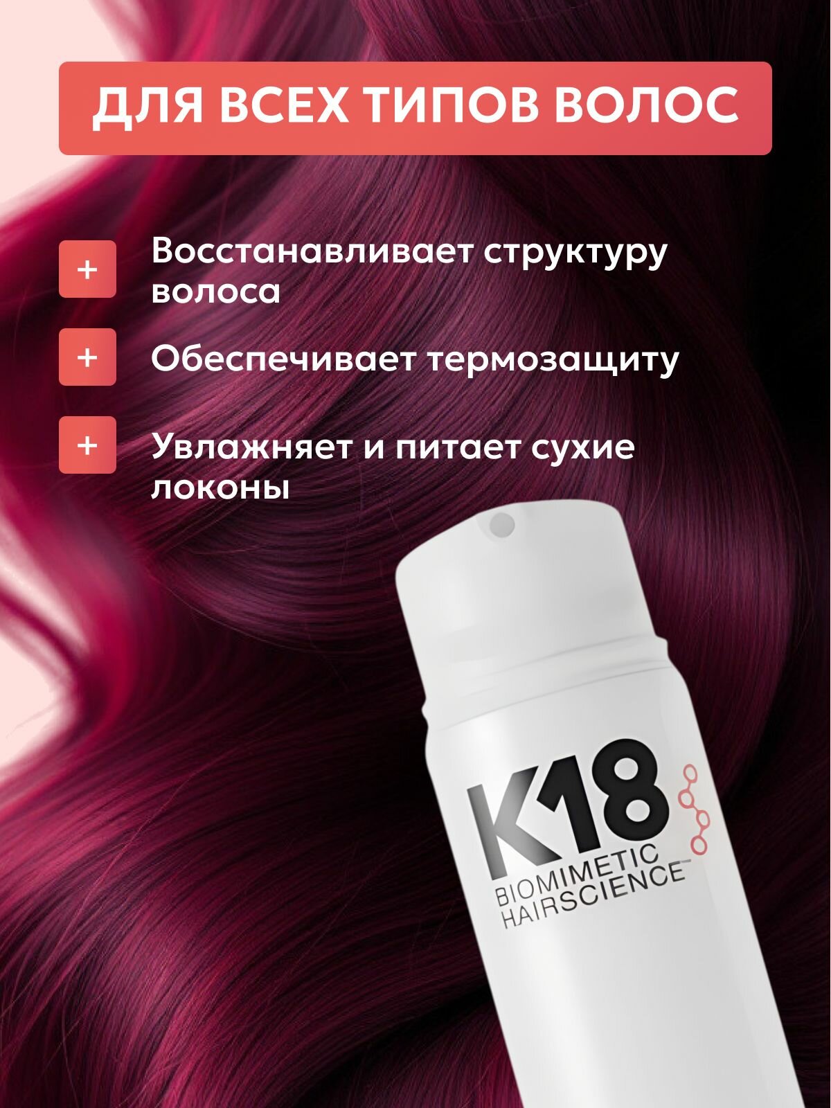 | Состав | Water (Aqua) (Eau), Alcohol Denat., Propylene Glycol, Cetearyl Alcohol, Dicaprylyl Ether, Cetyl Esters, Behentrimonium Chloride, Polysorbate 20, sh-Oligopeptide-78 (K18Peptide™), Hydrolyzed Wheat Protein, Hydrolyzed Wheat Starch, Isopropyl Alcohol, Tocopherol, Phenoxyethanol, Potassium Sorbate, Citric Acid, Fragrance (Parfum), Geraniol, Linalool, Hexyl Cinnamal, Benzyl Alcohol |