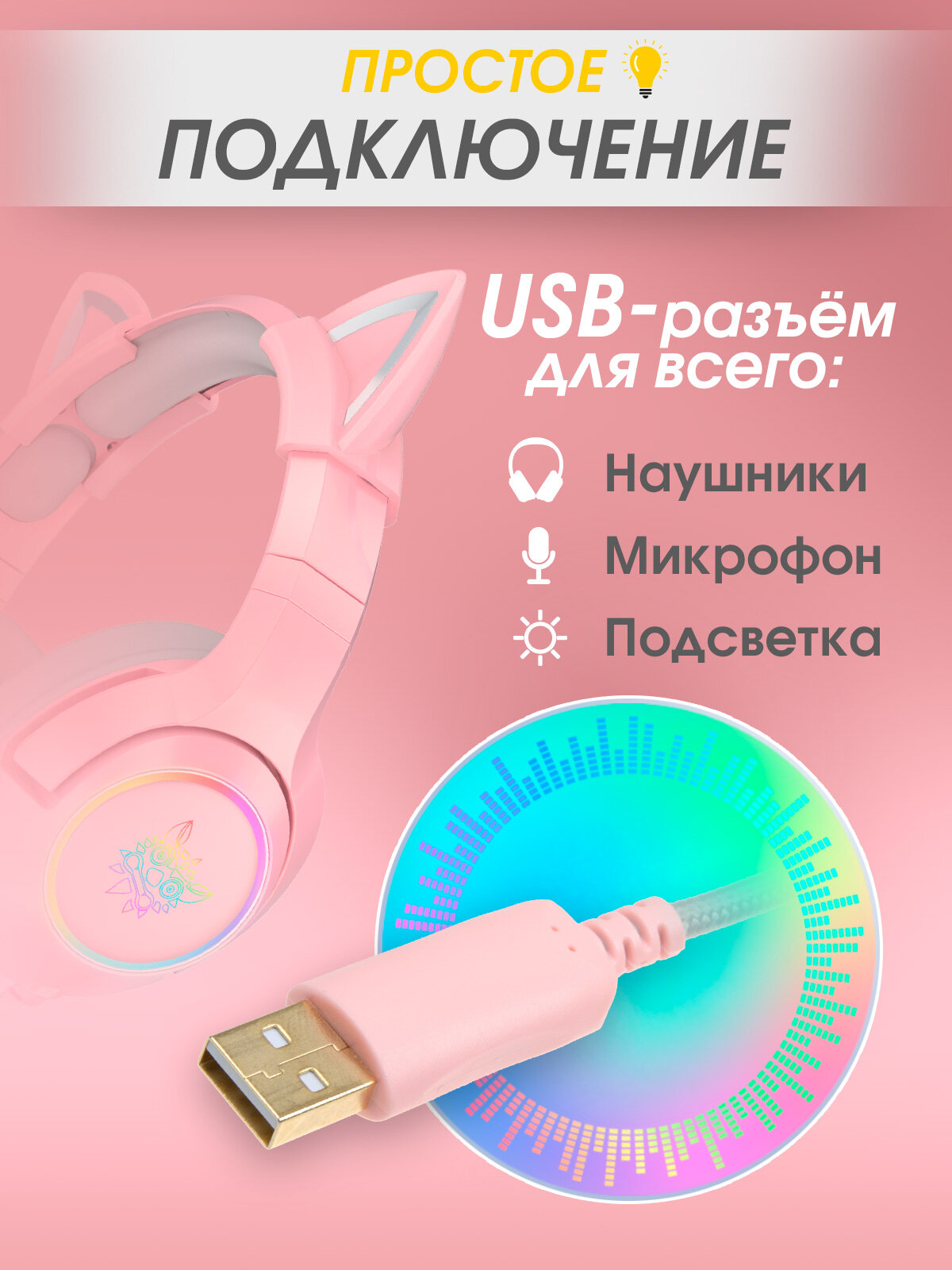 Игровые наушники Onikuma K9-7.1 Pink Cat розовые с кошачьими ушками и подсветкой: сравнение цен, характеристики, фото, актуальное наличие и цены.